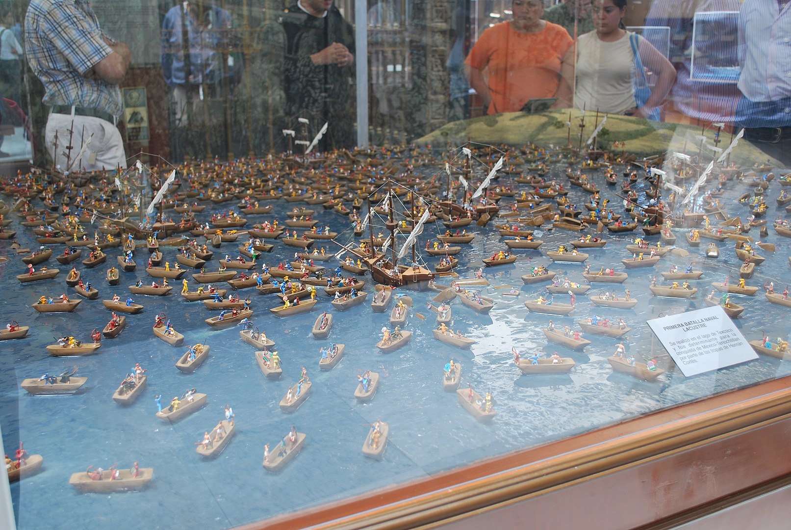 To seize control of the Aztec island capital of Tenochtitlan, Cortes realized that he needed to control the surrounding waters of Lake Texcoco. This meant building a fleet. To accomplish this, Cortes used scavenged lumber from his previously-scuttled seafaring vessels to build brigantines in pieces in Tlaxcala. These prefabricated pieces were then man-portaged by his Tlaxcalan allies to the shore of Lake Texcoco. Here they were assembled, and made ready for combat on the lake. While simultaneously he sent land-based conquistadores to attack Tenochtitlan’s causeways, Cortes launched his brigantines to attack Tenochtitlan. In his way were hundreds of Aztecs canoes waiting to swarm over the Spanish.