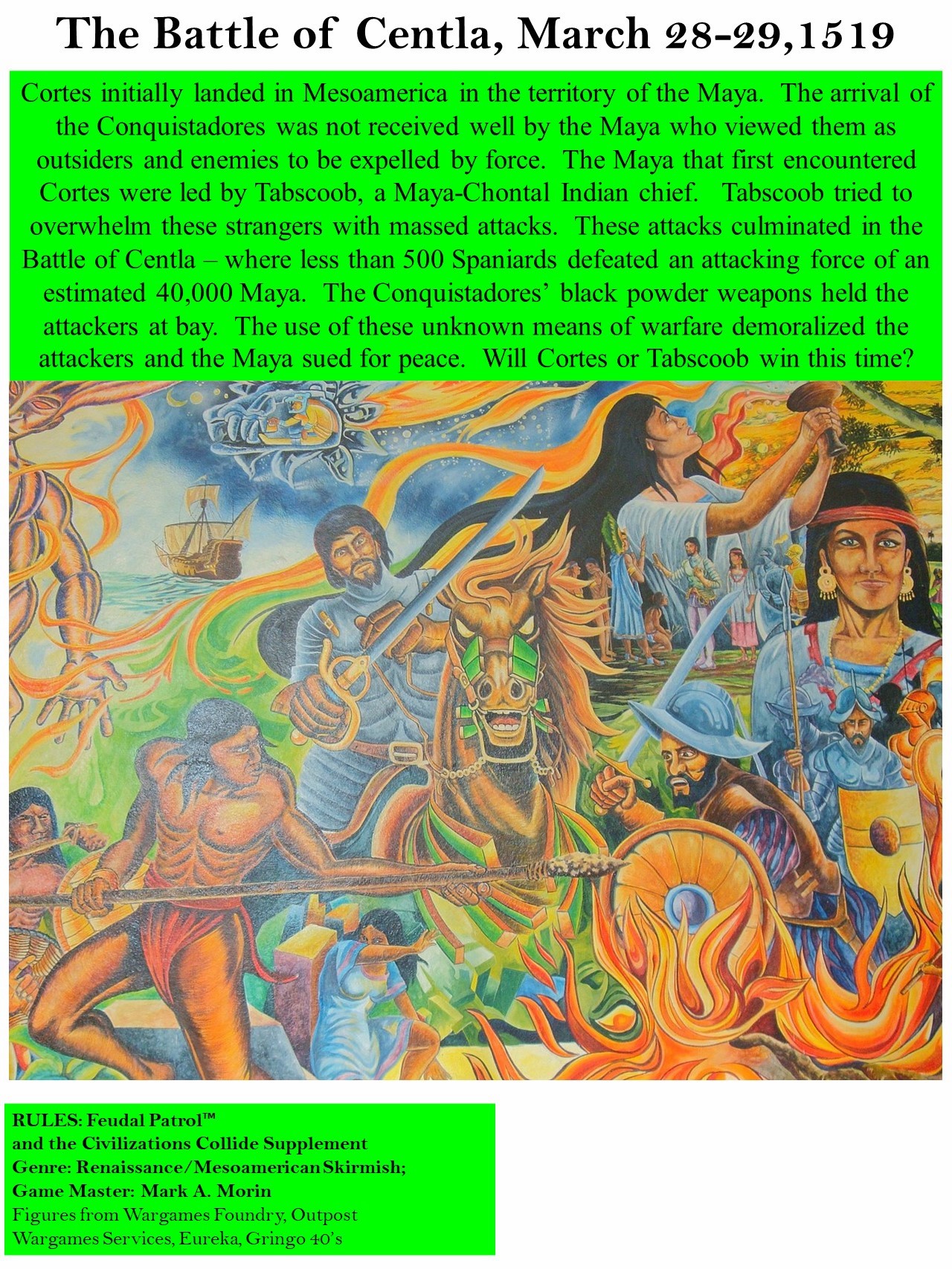 On Friday afternoon, I ran the Feudal Patrol game of the Battle of Centla – a battle between the Maya and the Conquistadores under Hernan Cortes.