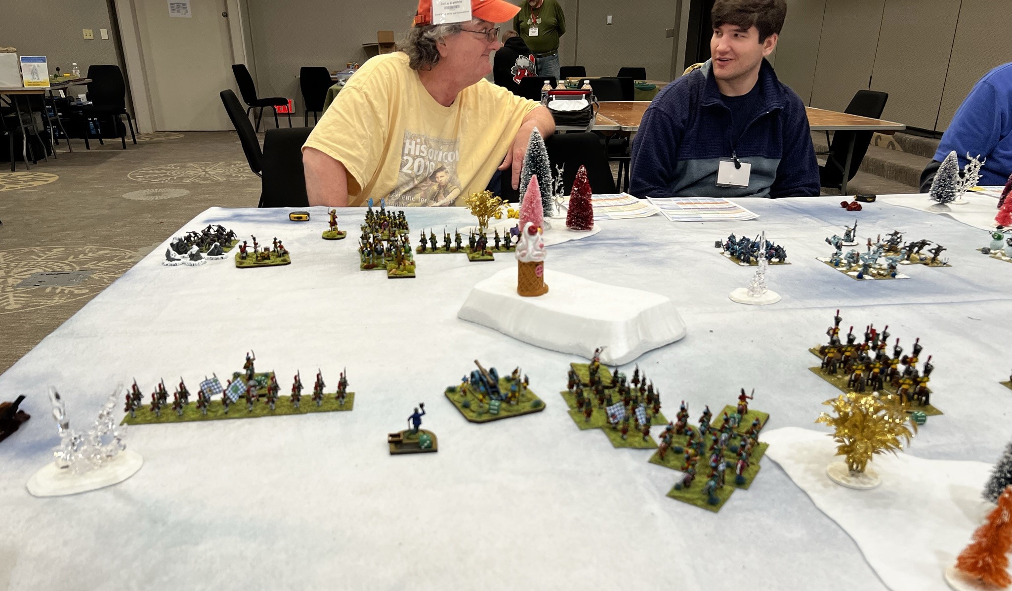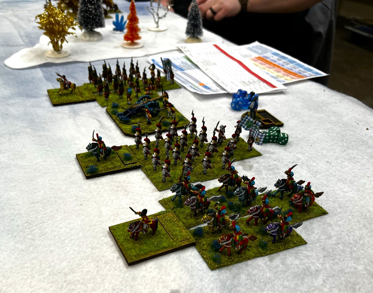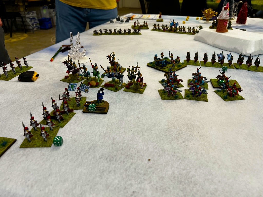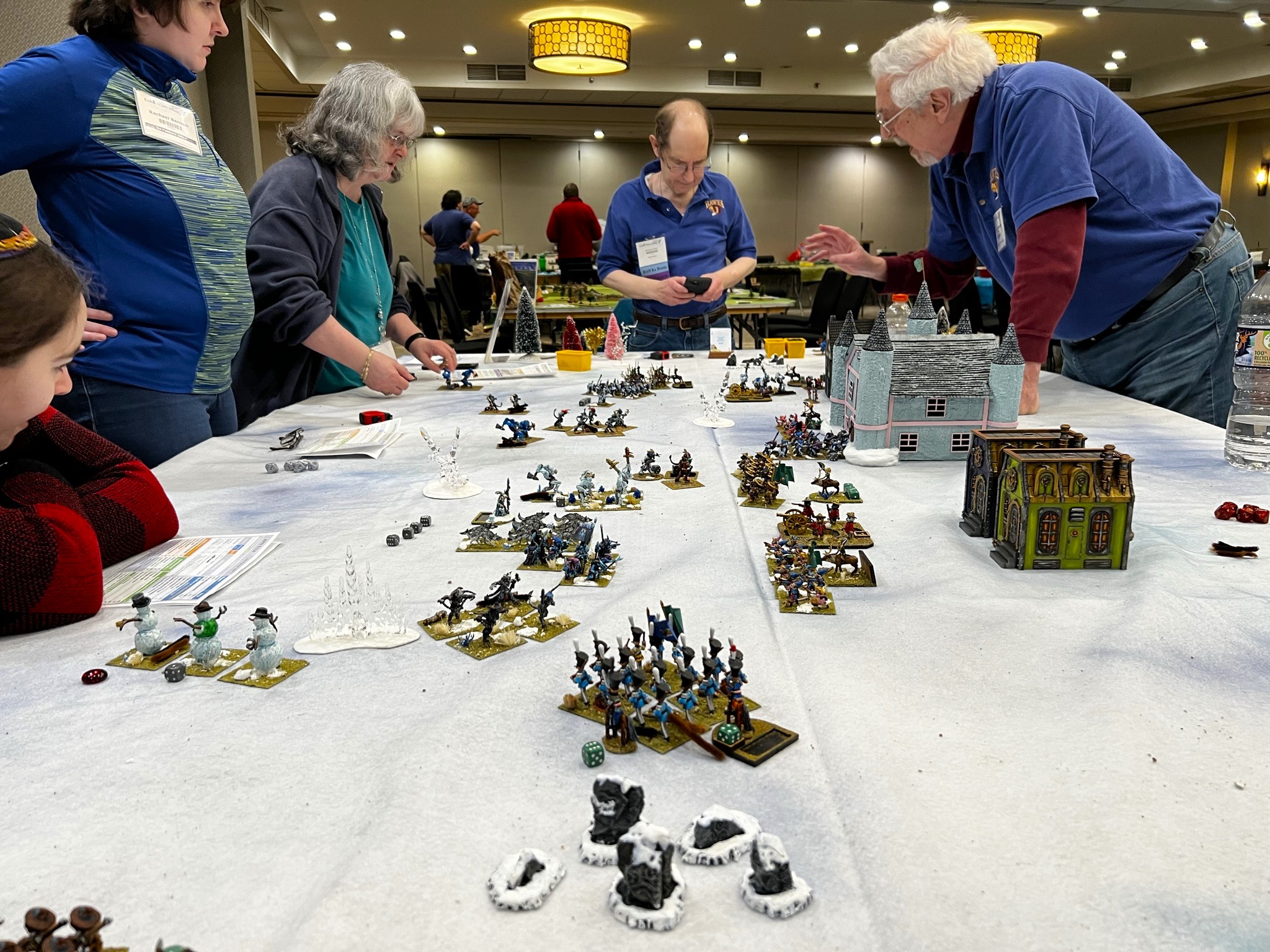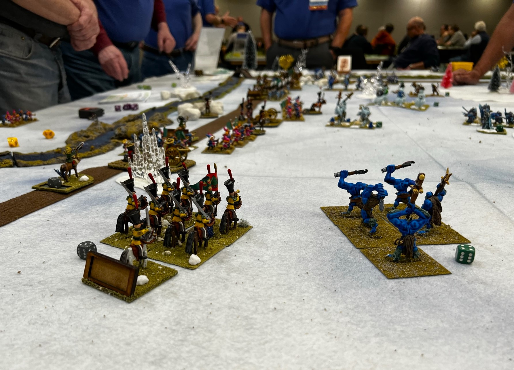 This was the third Ozz linked game run by Buck Surdu. In the second game, the forces of Yule held on to the Bauble of Time. Here, the Ice Queen’s forces are ambushing a convoy of Babbo Natale who is trying to get the Bauble to a safe place. I did not get as many pictures of this game – but I played on the side of the Ice Queen this time. We ended up taking the Bauble (Giant Evil Snowmen charged the convoy and stole it). It was a lot of fun.