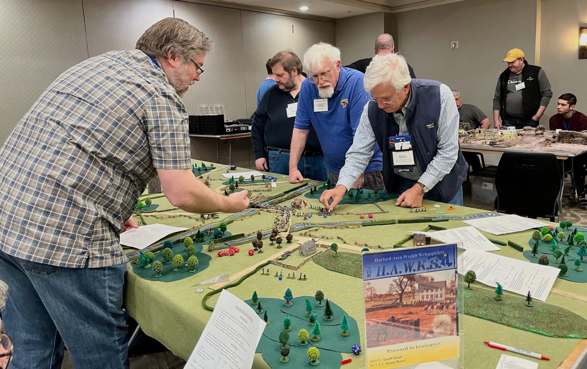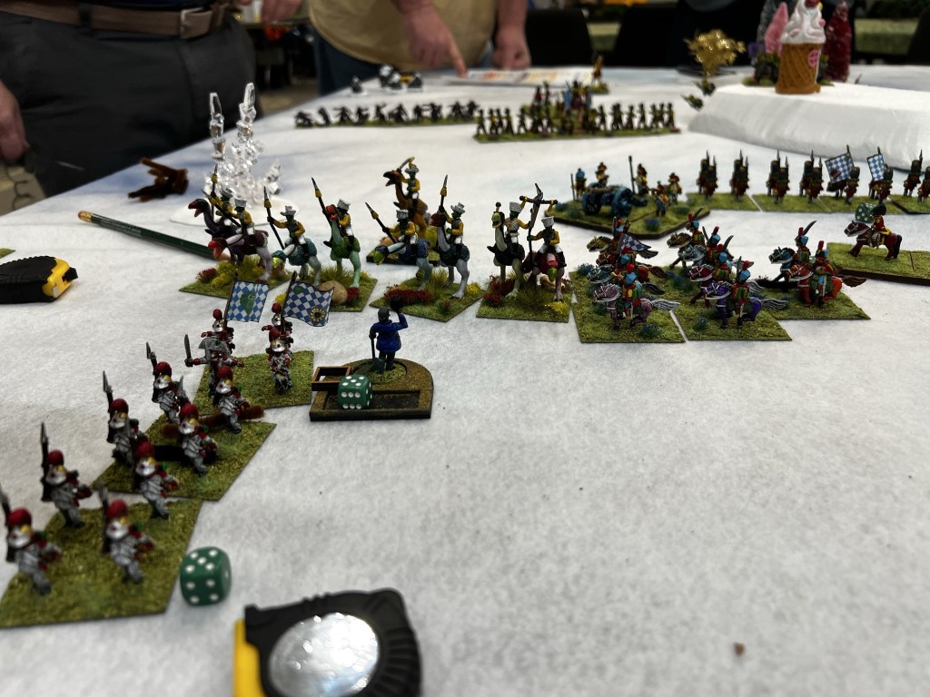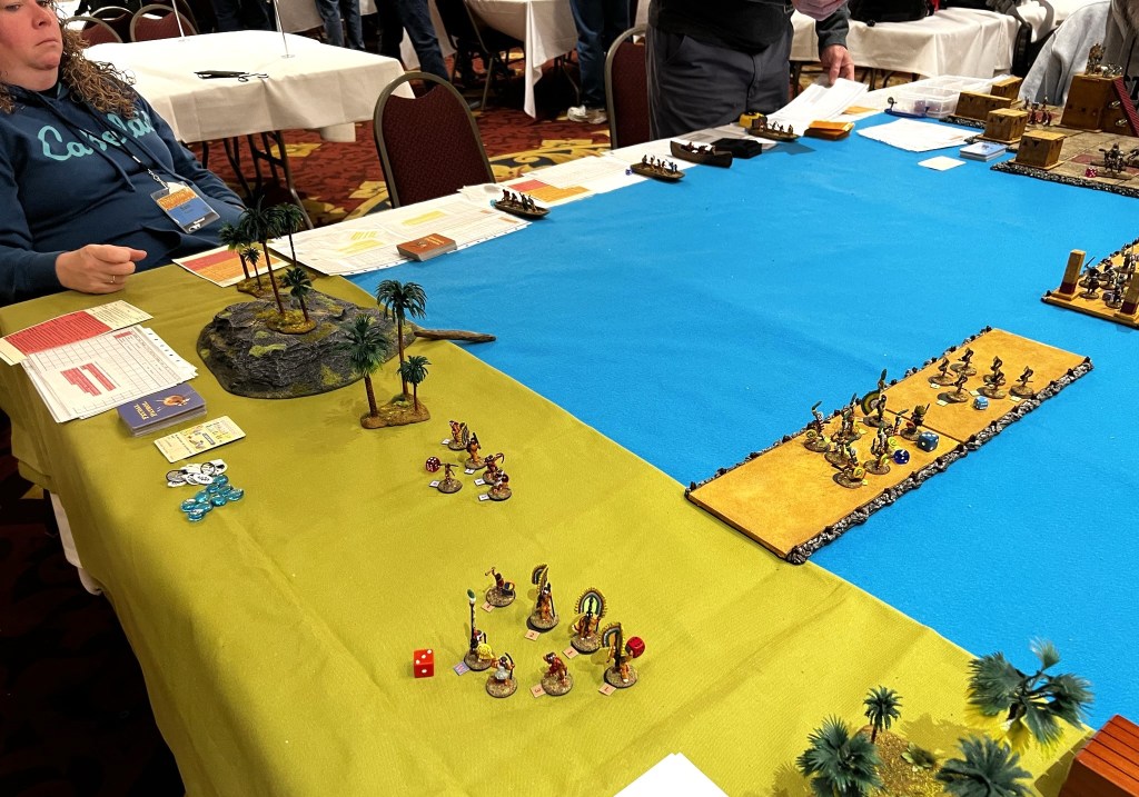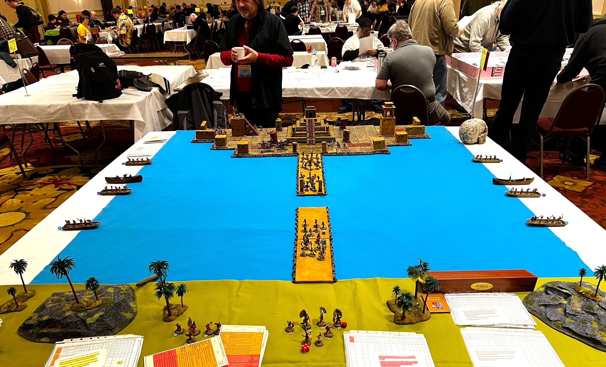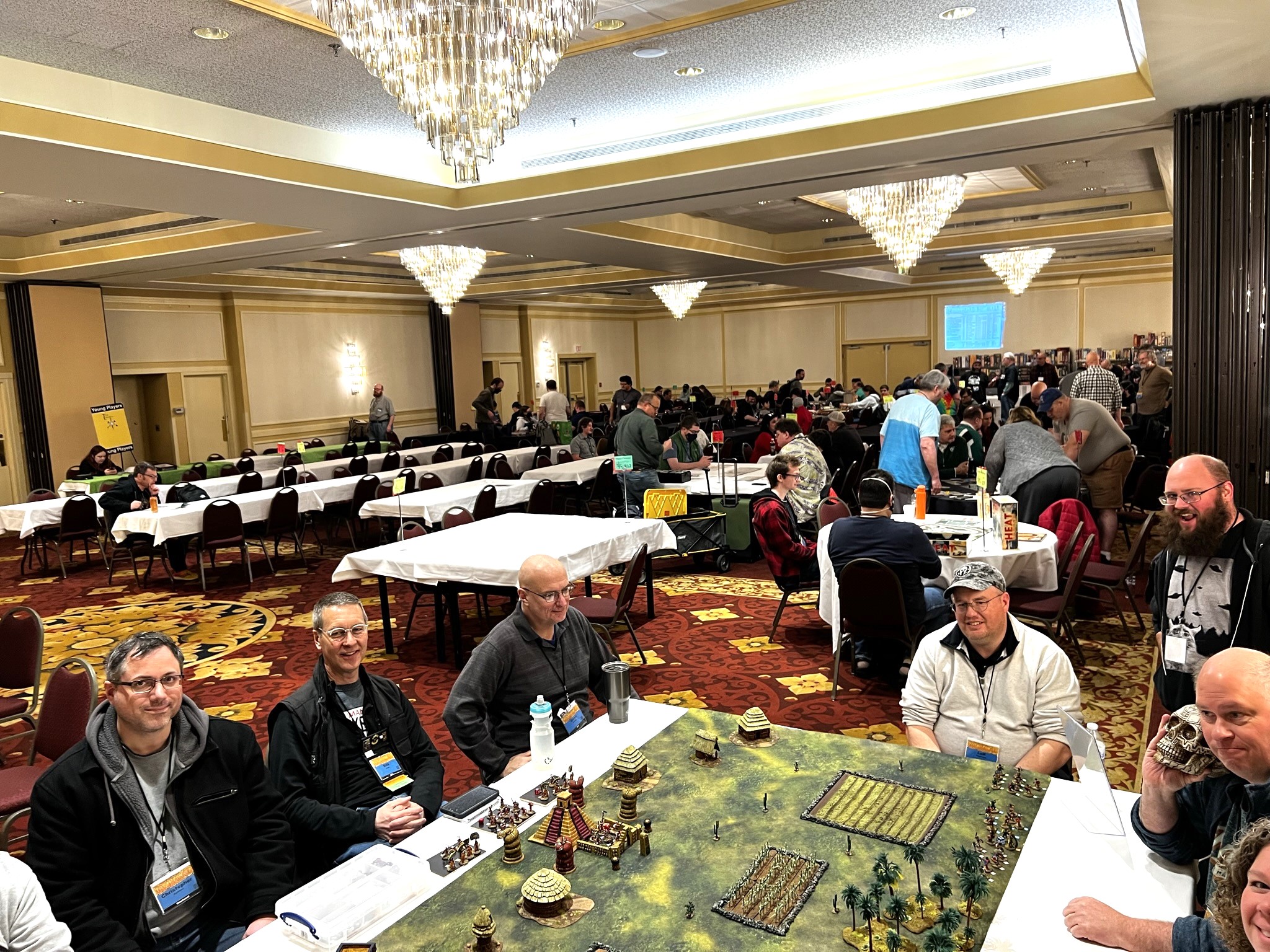 Last weekend the Cold Wars 2023 gaming convention was held in Valley Forge, PA at the Valley Forge Casino Resort. I participated as a game master and as a player. I ran three games of Feudal Patrol, played in two games of Wars of Ozz, and participated as a player in an American War of Independence (AWI) game. I really enjoyed the convention – and personally had some special moments as you will soon see in this post. I, a Massachusetts “carpetbagger”, am grateful once again for the welcome, hospitality, and friendship of the HAWKS club, especially Buck Surdu, Greg Priebe, Chris Palmer, Dave Wood, and Eric Schlegel – who all contributed to making my experience a memorable one. I also want to thank the players who chose to play in my games. I also must thank the HMGS staff and volunteers for making the convention work so well.