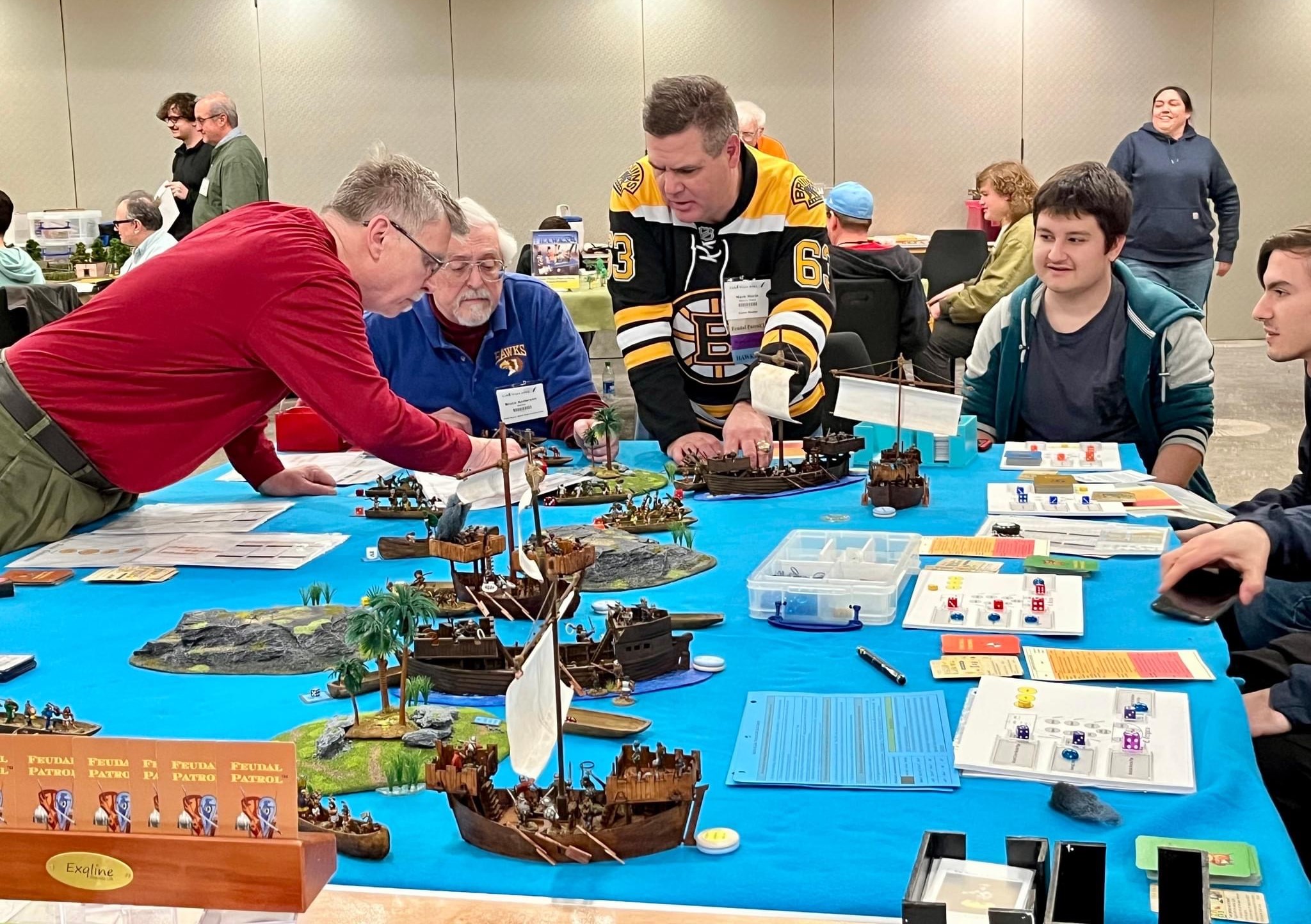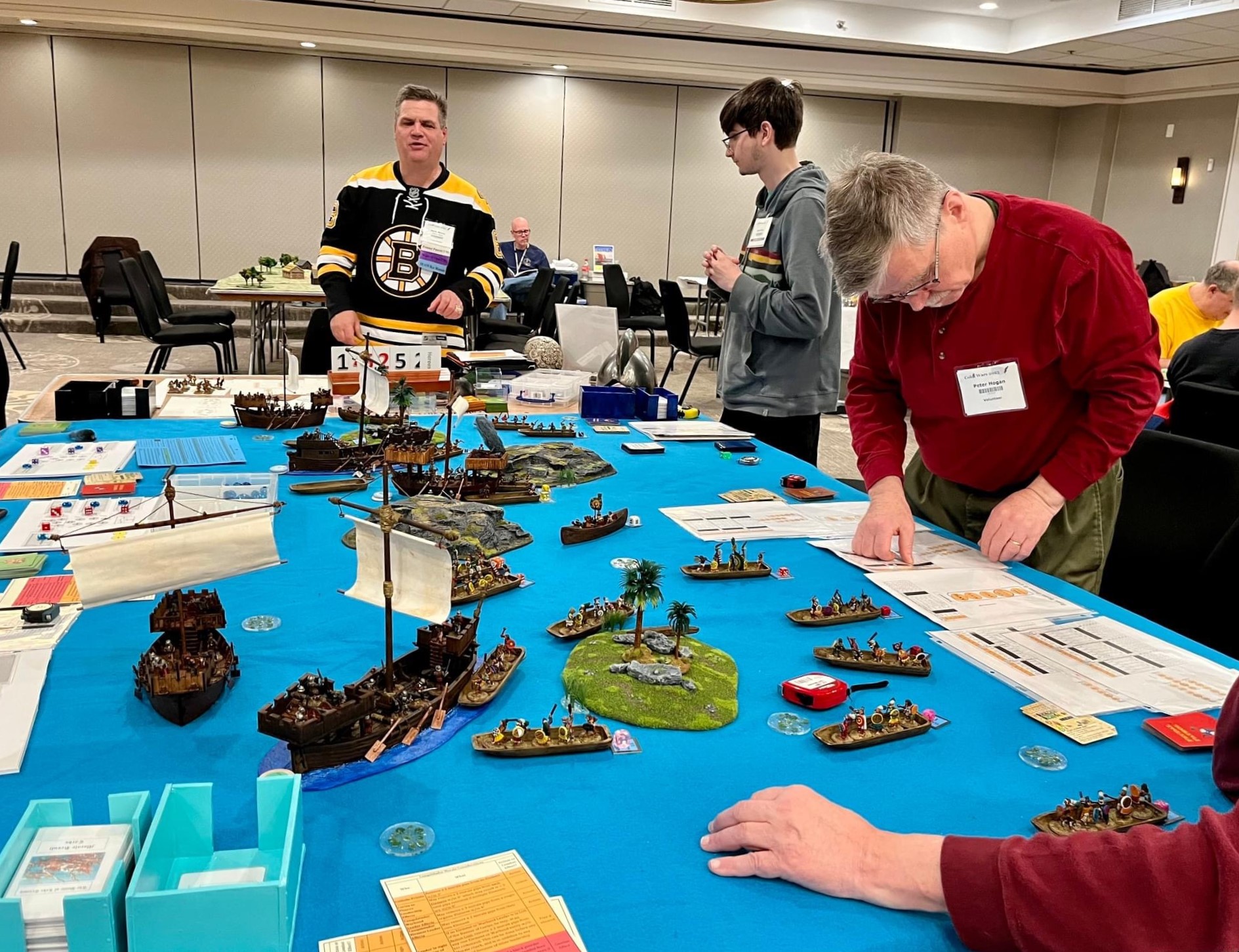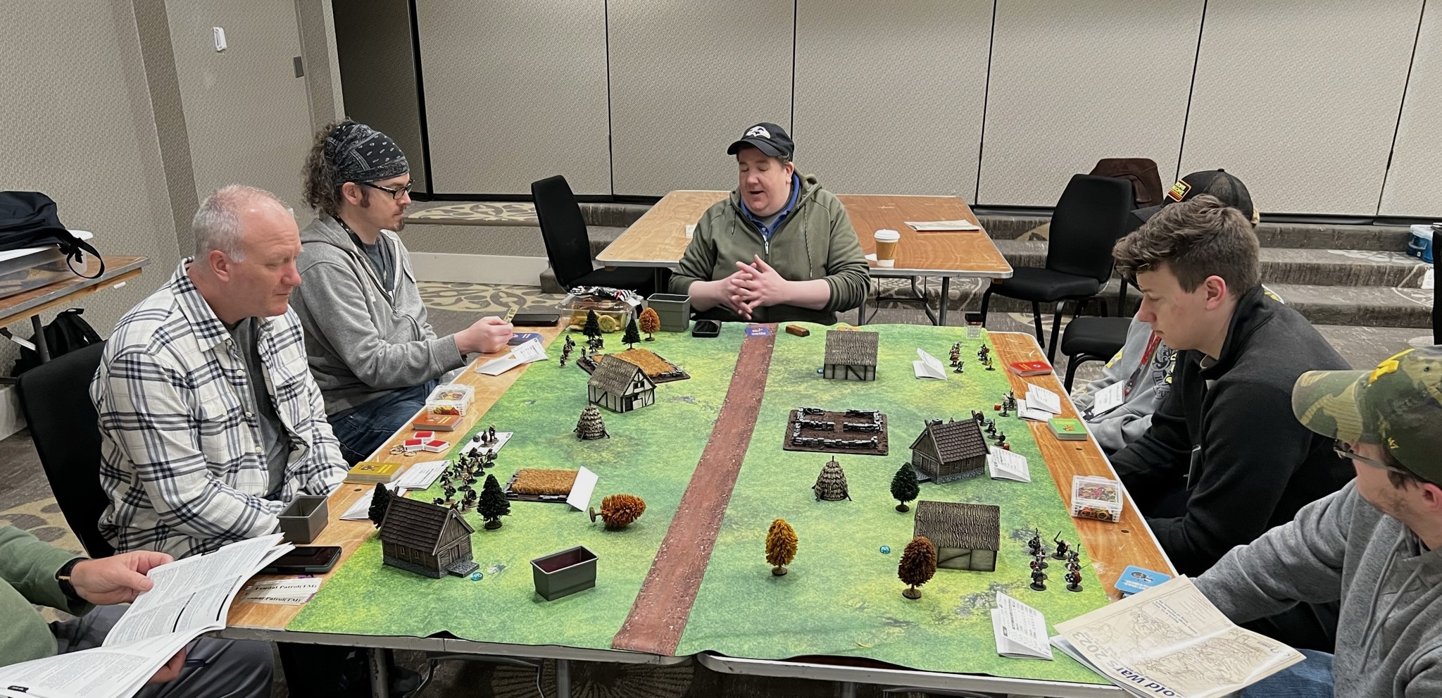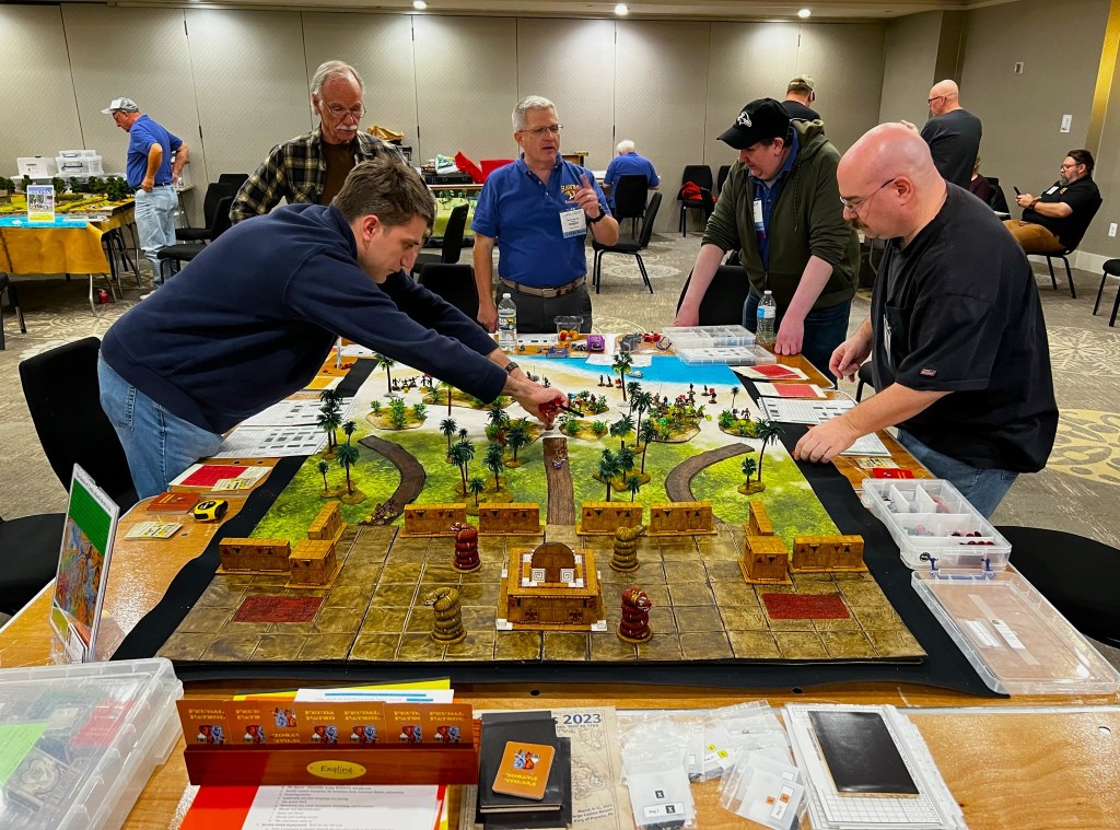 Last weekend the Cold Wars 2023 gaming convention was held in Valley Forge, PA at the Valley Forge Casino Resort. I participated as a game master and as a player. I ran three games of Feudal Patrol, played in two games of Wars of Ozz, and participated as a player in an American War of Independence (AWI) game. I really enjoyed the convention – and personally had some special moments as you will soon see in this post. I, a Massachusetts “carpetbagger”, am grateful once again for the welcome, hospitality, and friendship of the HAWKS club, especially Buck Surdu, Greg Priebe, Chris Palmer, Dave Wood, and Eric Schlegel – who all contributed to making my experience a memorable one. I also want to thank the players who chose to play in my games. I also must thank the HMGS staff and volunteers for making the convention work so well.