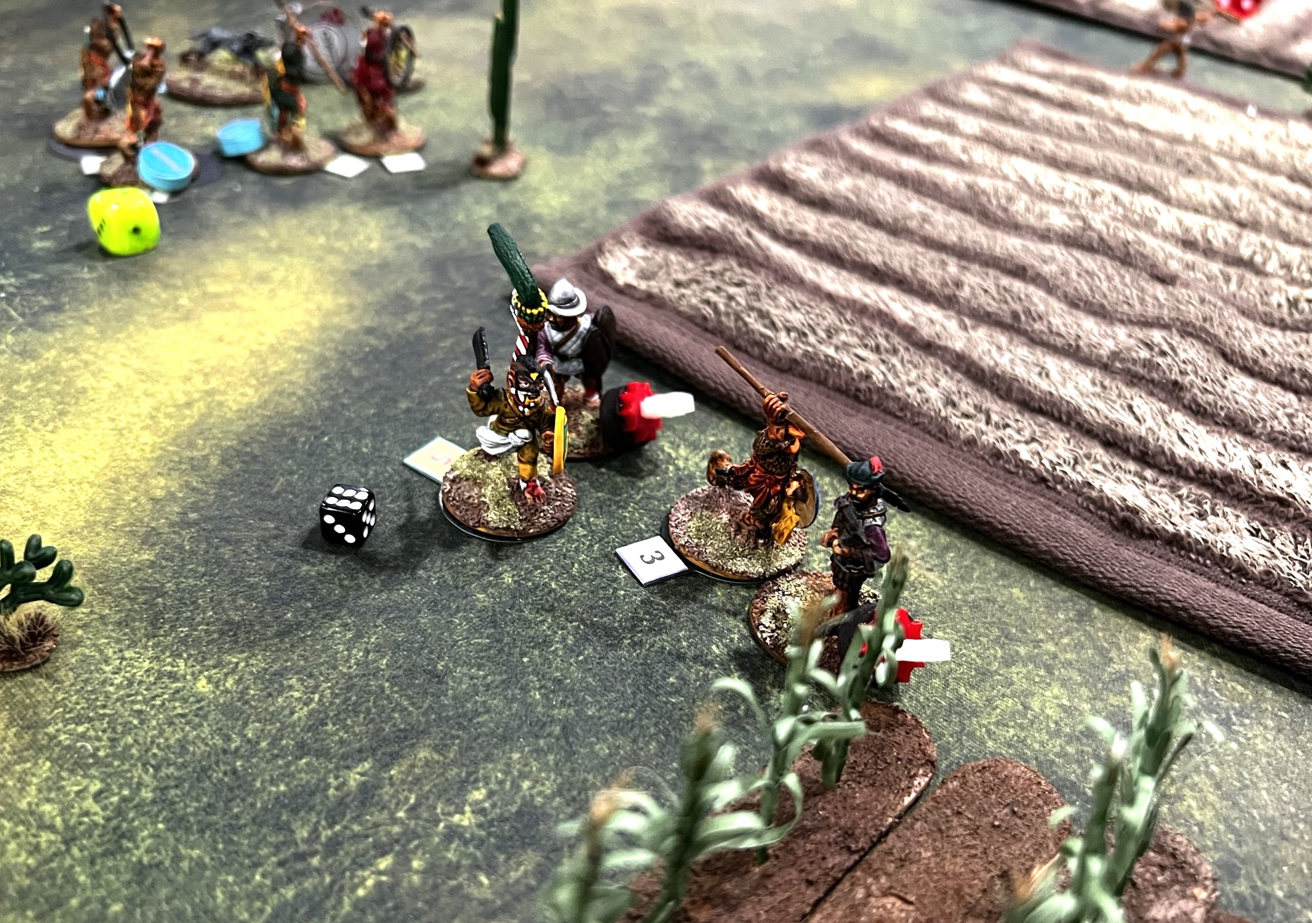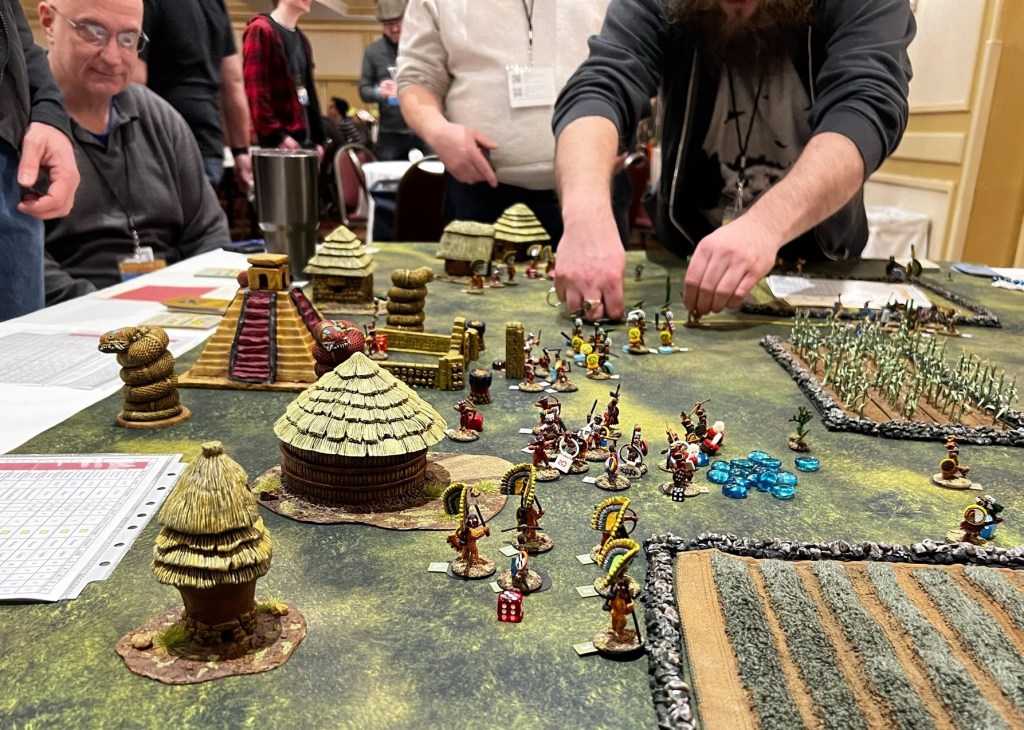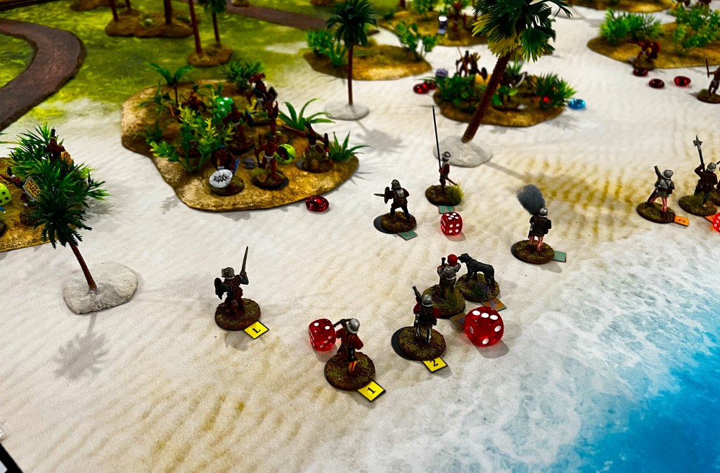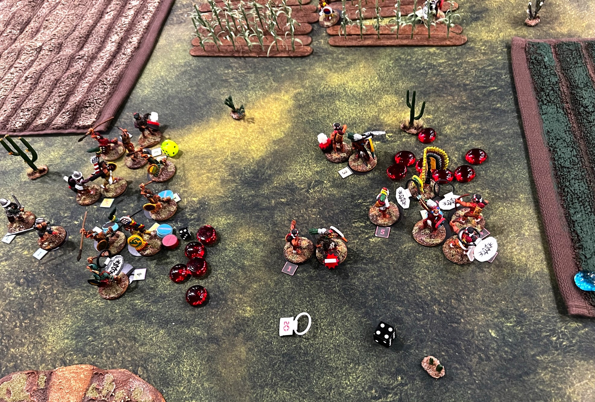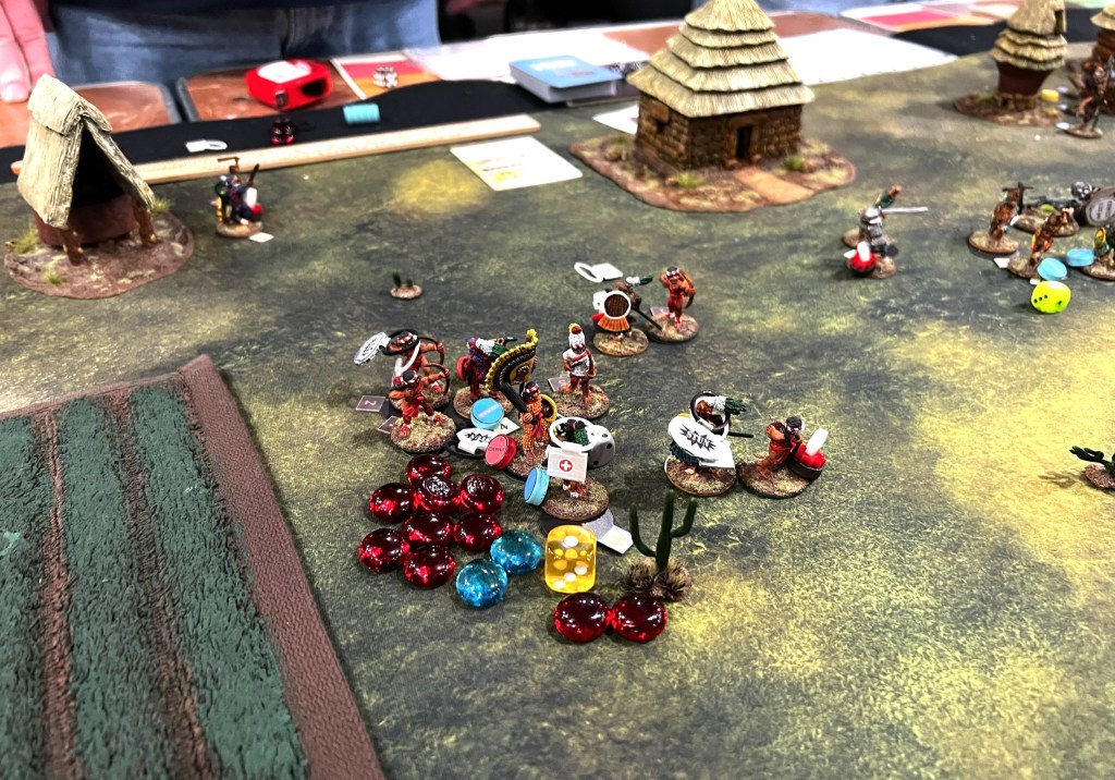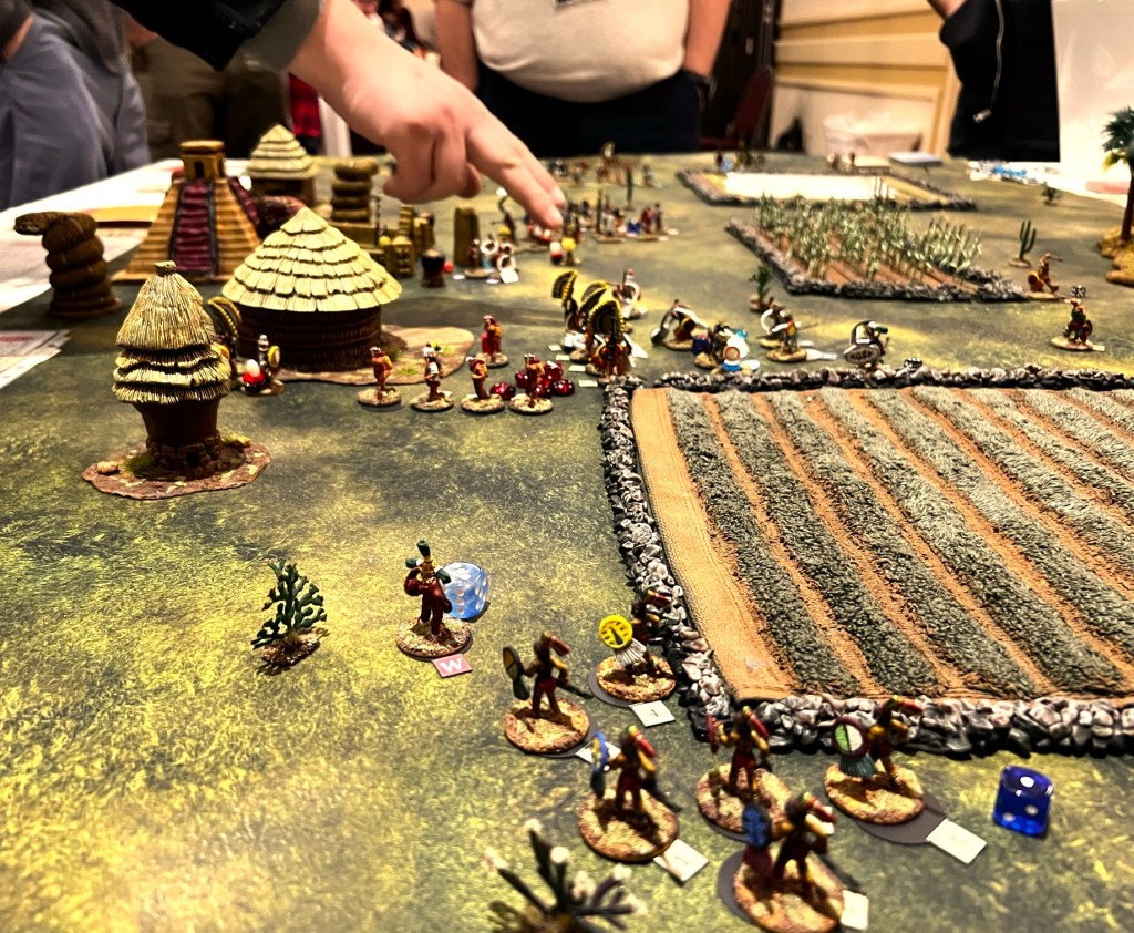 Finally, both the Aztecs and the Tlaxcalans started taking prisoners for sacrifice – and gaining victory points in the process. Eric Schlegel successfully fired his falconet again with langridge at a swarm of Aztecs, taking out several of them in the last turn. This was to be pivotal.