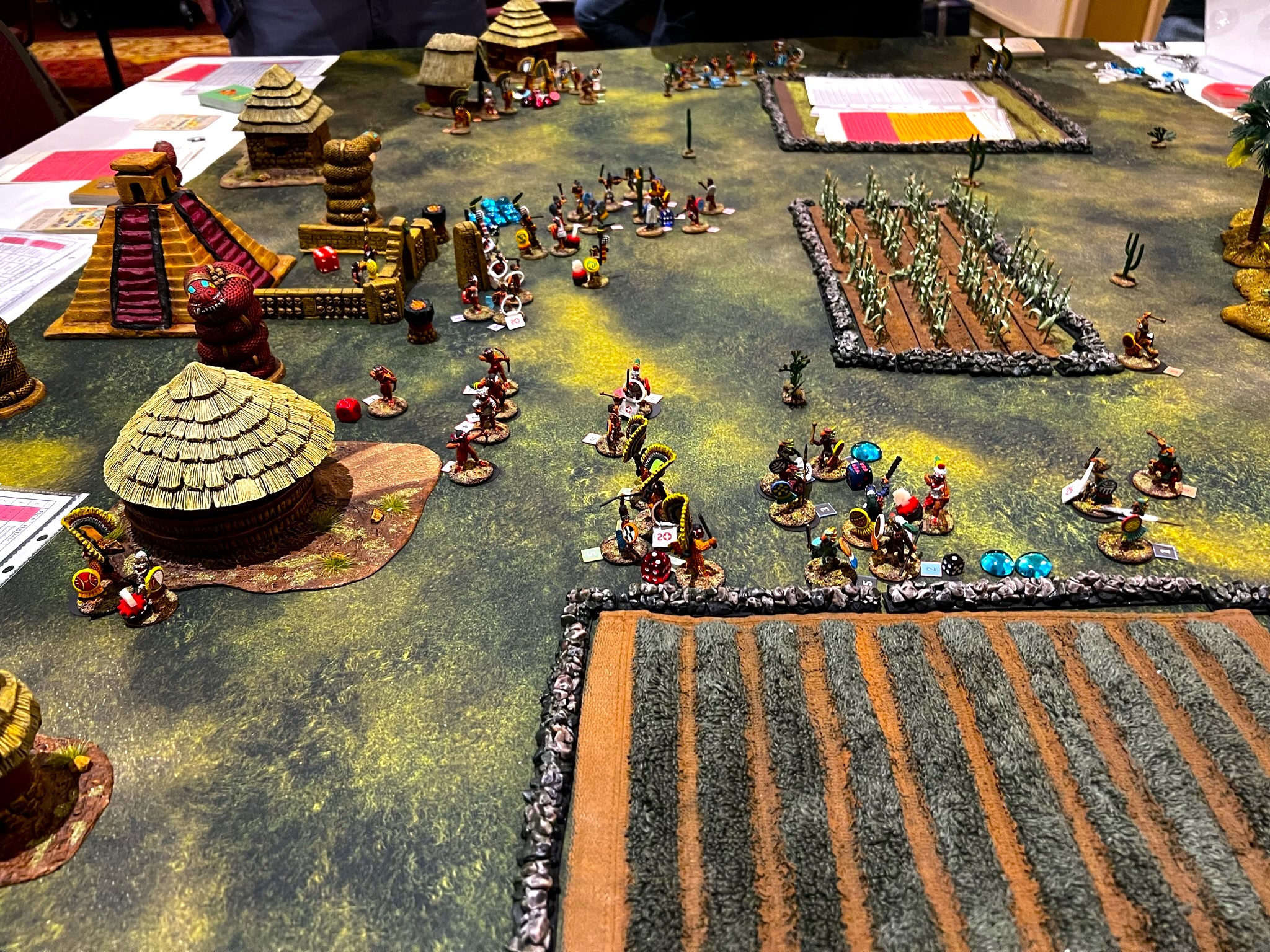 The Spanish needed to reach the Maya city or kill 50% of the Spanish, or kill Tabscoob, the Maya leader. The Maya needed to prevent the Spanish from achieving their victory conditions, kill Cortes, or kill 50% of the Conquistadores. In the game, the Maya do get reinforcements, and the Spanish do not. Time is not on the Spanish players’ side.
