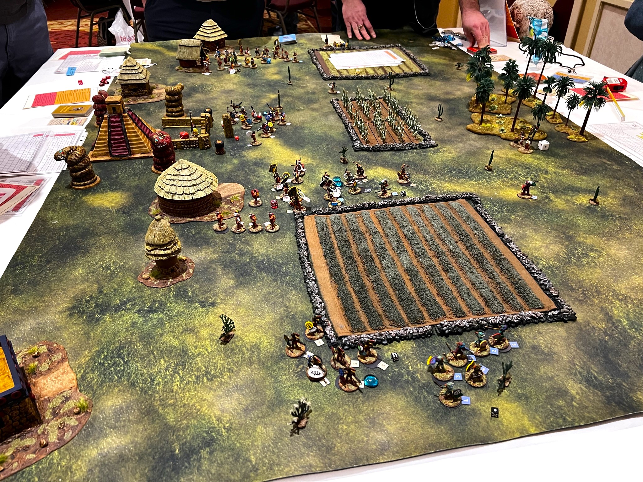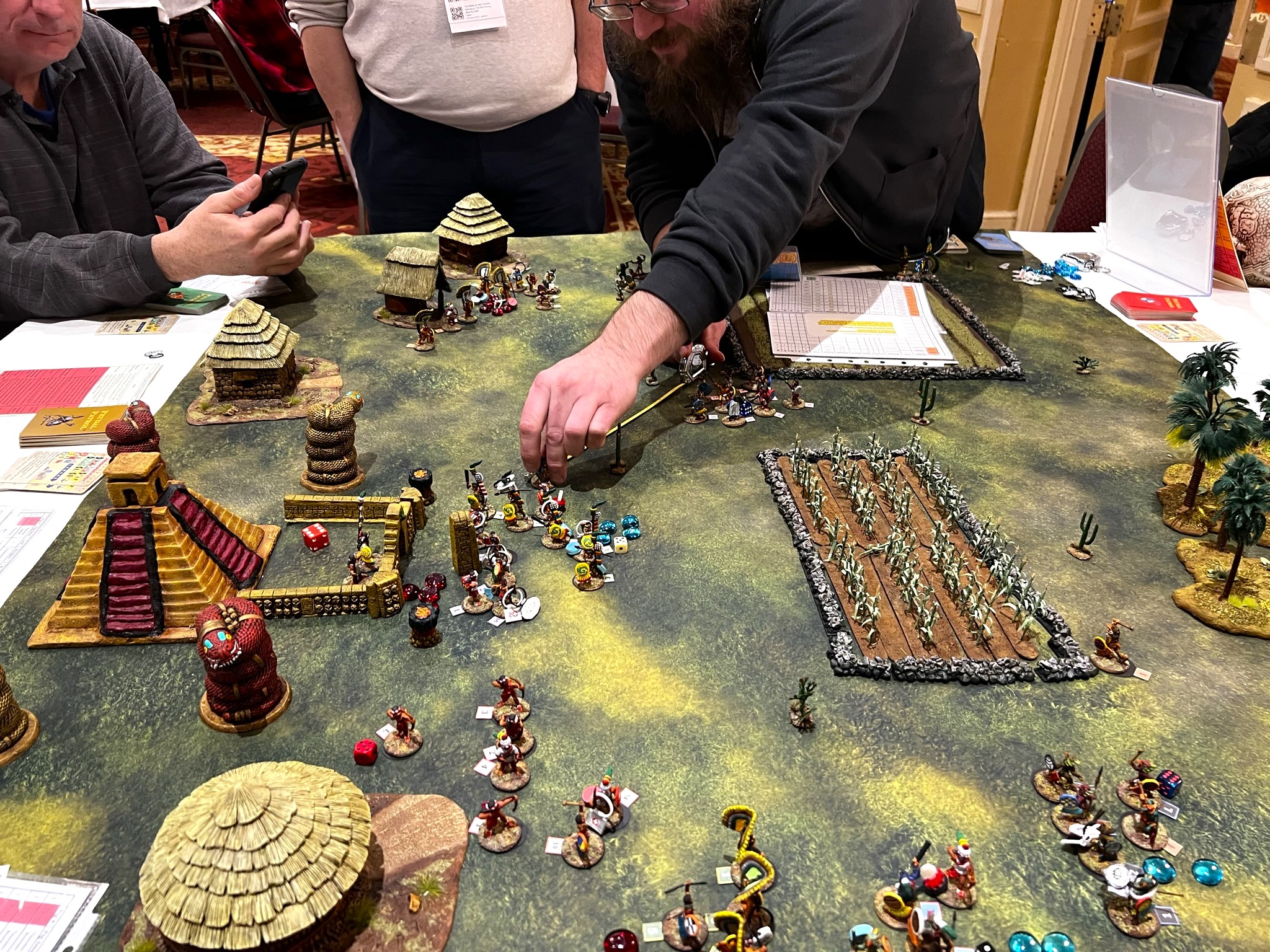 Dave Wood ran yet another visually stunning game – and for fun he used my Winkie Cavalry and Infantry in the game, plus my Lesser Apes. The feedback I got was that they acquitted themselves very well while I was off in Mesoamerica!