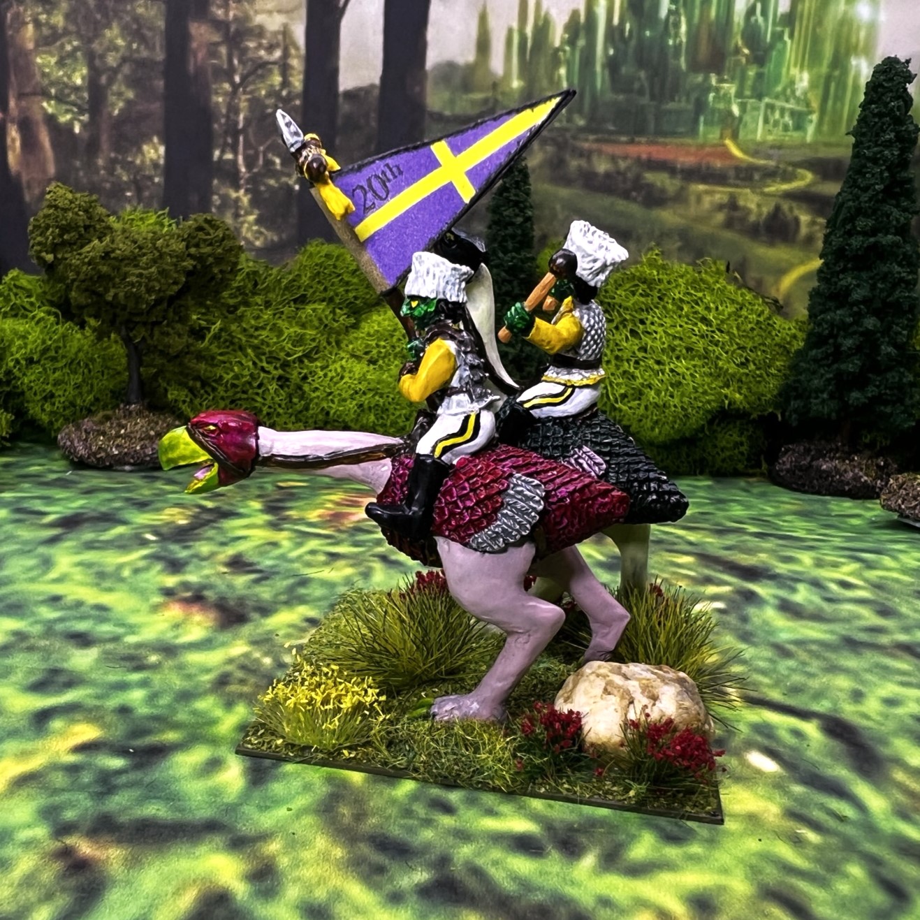 That Winkie cavalry attacking player rolled 5 dice for hits – not a single miss (the roll was amazing) – and those hits would be doubled due to impetus. All 5 hit rolls yielded 10 hits – and that took out fully 50% of Tik-Tok’s regiment in one fell swoop. Tik-Tok routed, but I was able to rally it and keep it in the game.