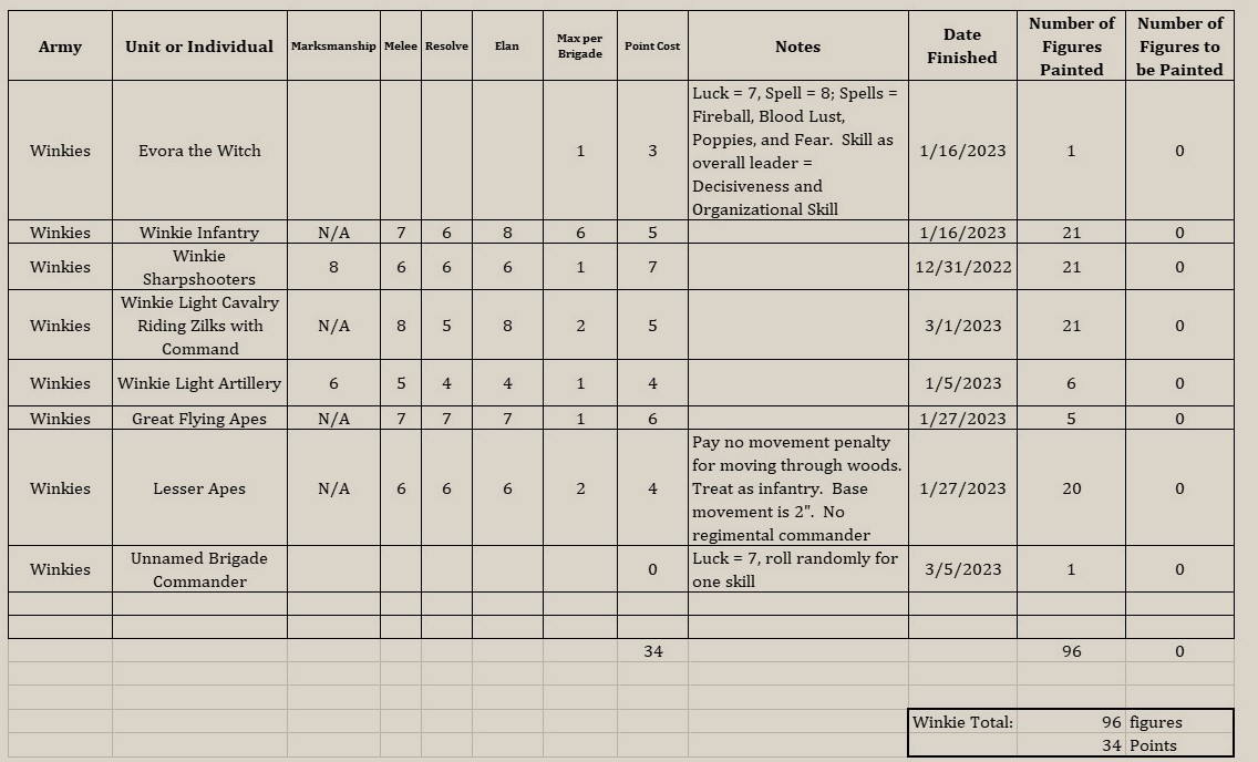 This was a “bring your own brigade” game GM’d by Chris Palmer – and to help I brought both my Winkie and my Munchkin brigades in case they were needed. As it turned out, I commanded the Munchkins, and faced my own Winkies!