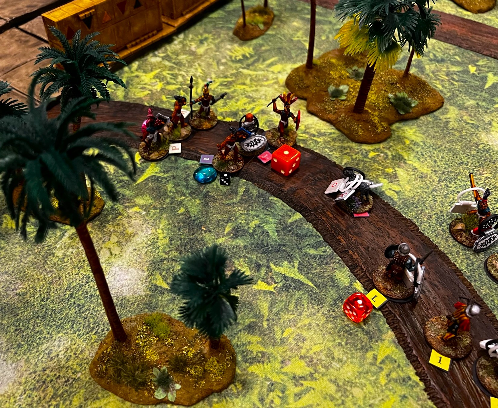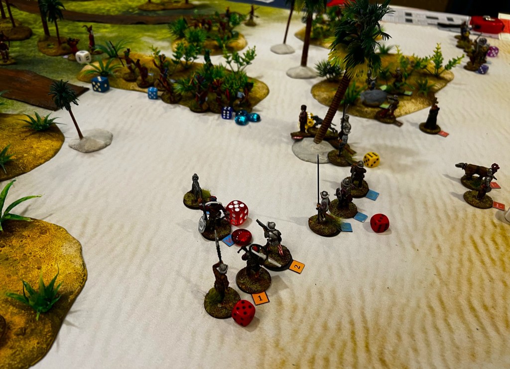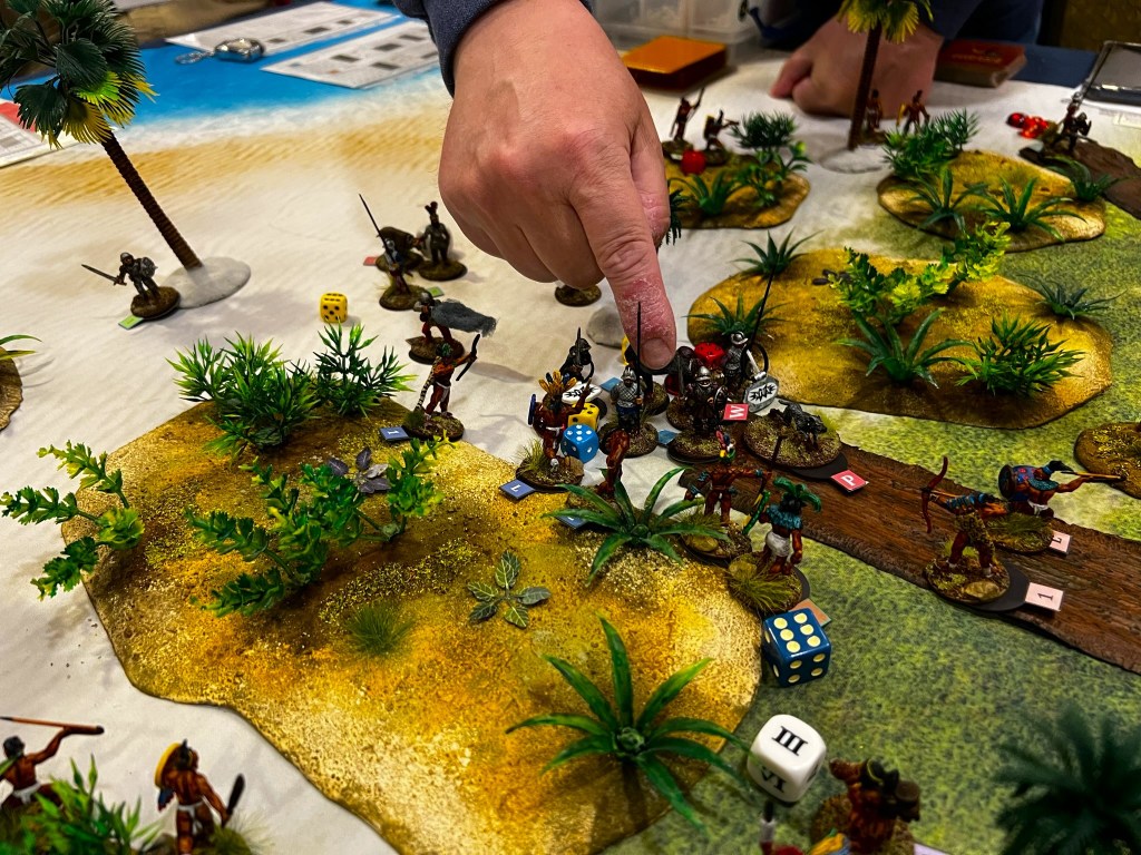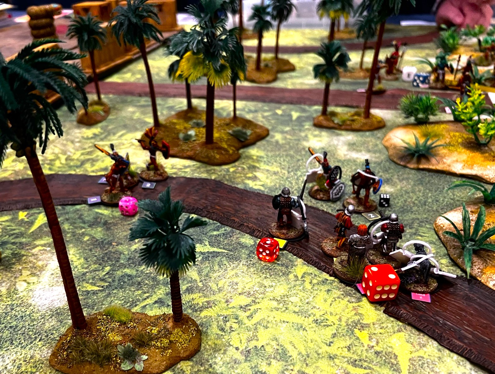 The next morning, I got in early and set up my next game – the Battle of Centla. This is a Feudal Patrol skirmish game based on the first encounter between the Conquistadores and the Maya (Cortes would later fight the Aztecs).
