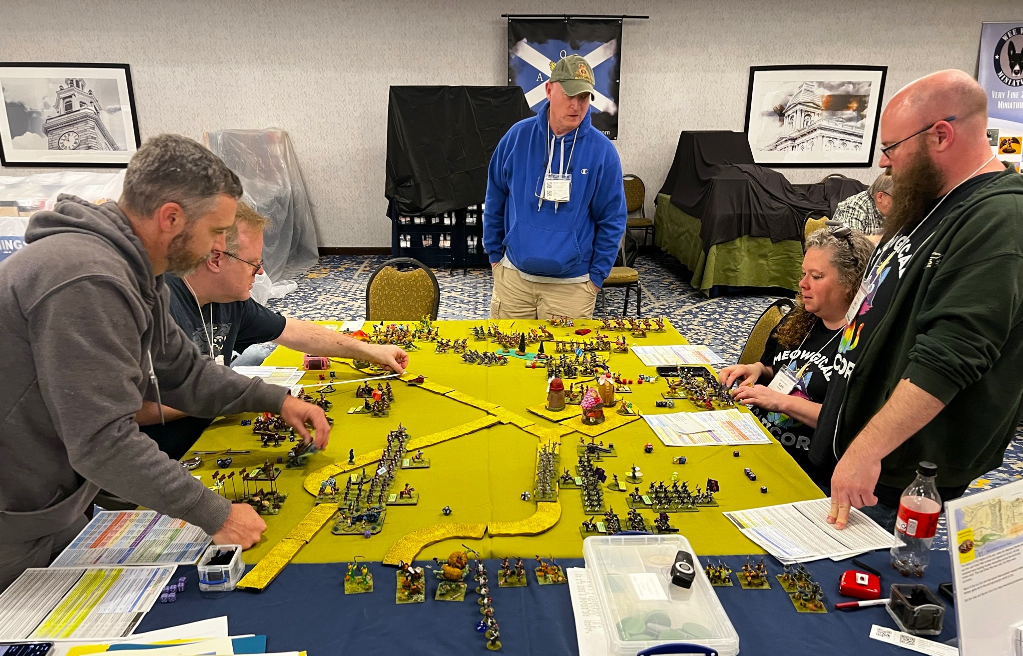 As background, the Huzzah! 2023 gaming convention was held in South Portland, ME, from May 19th to May 21st. It is run annually by the Maine Historical Wargamers Association (MWHA). There are two Facebook pages associated with the group, one is for the MWHA and one for the Huzzah! convention that you can access.
