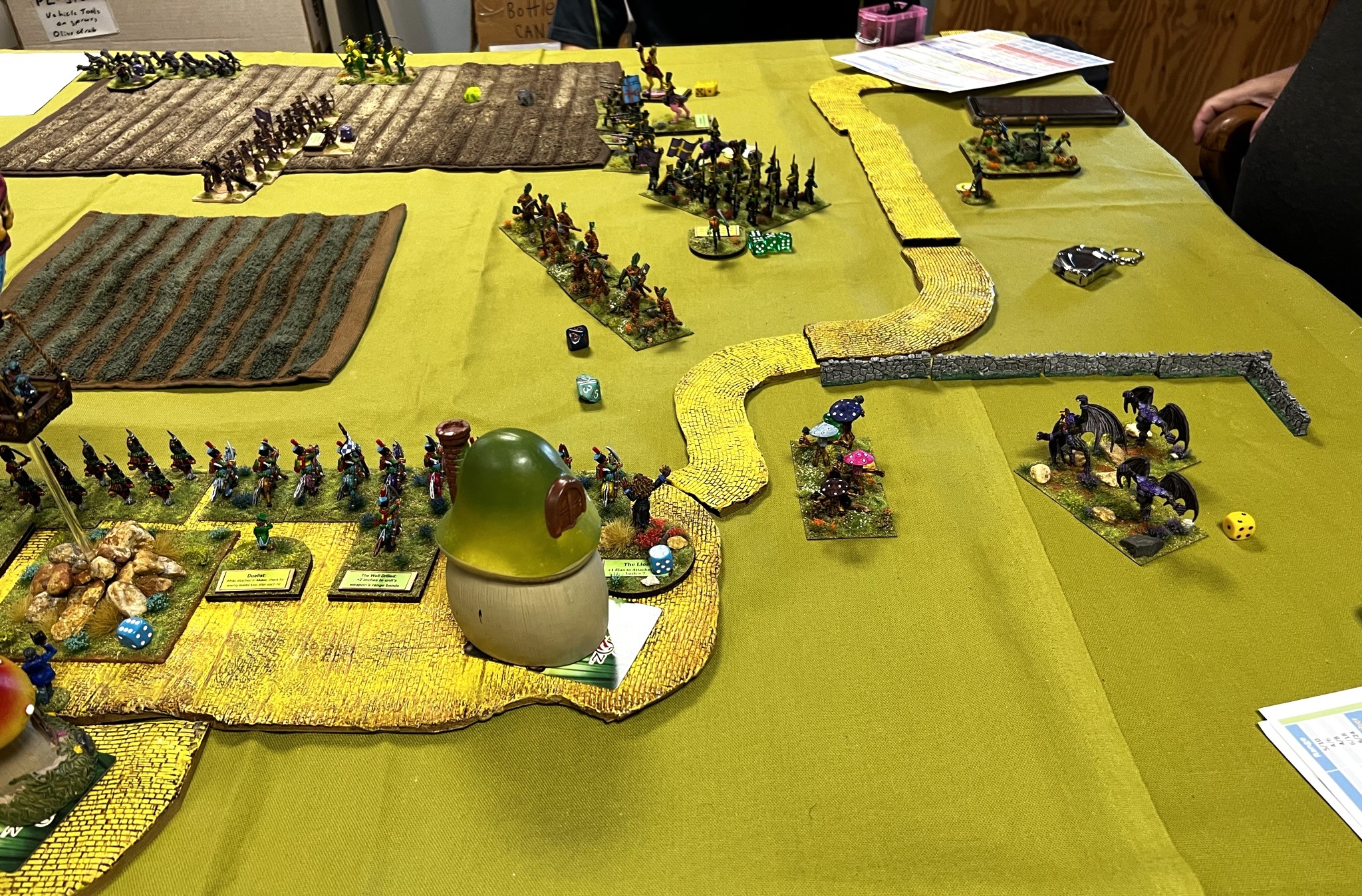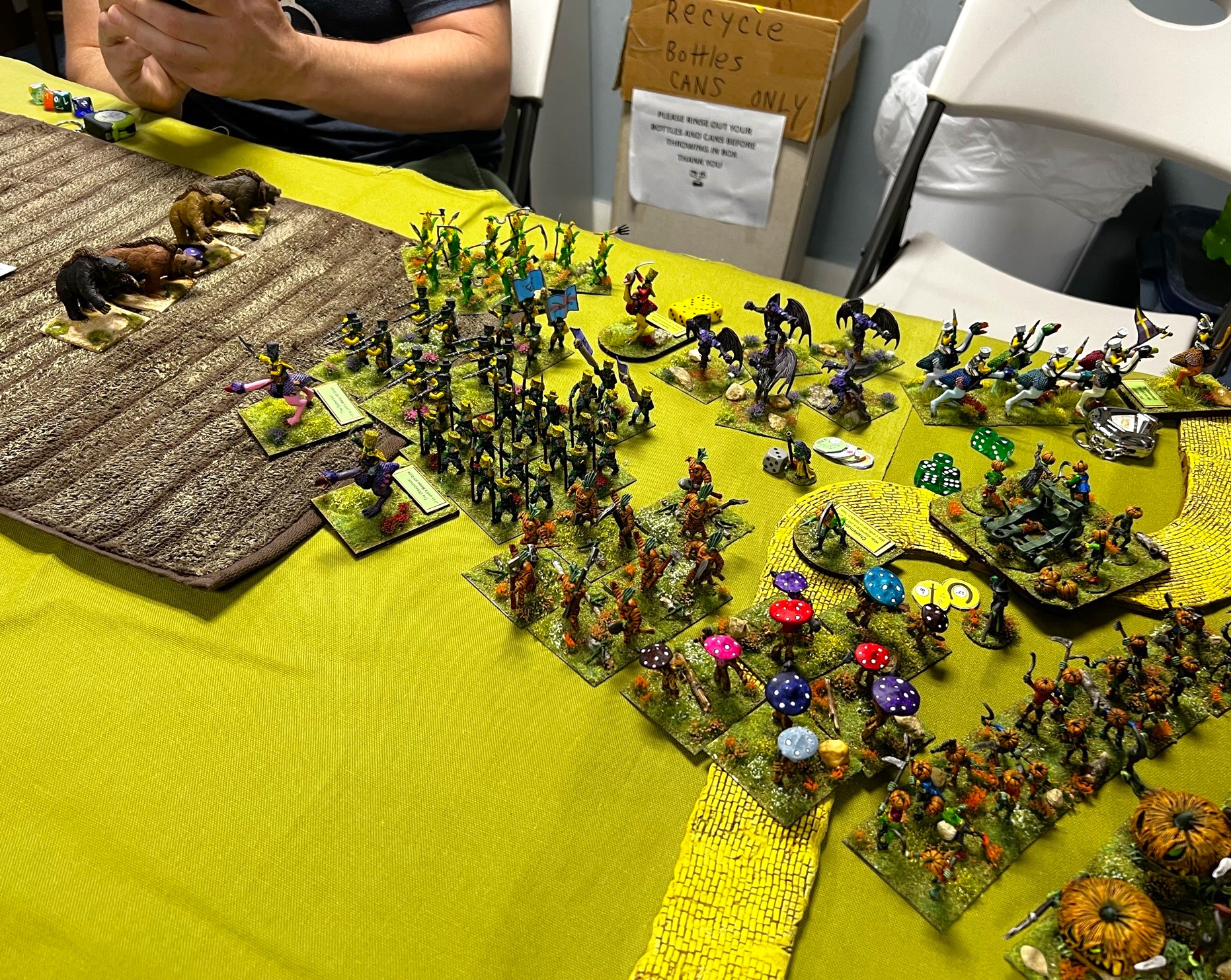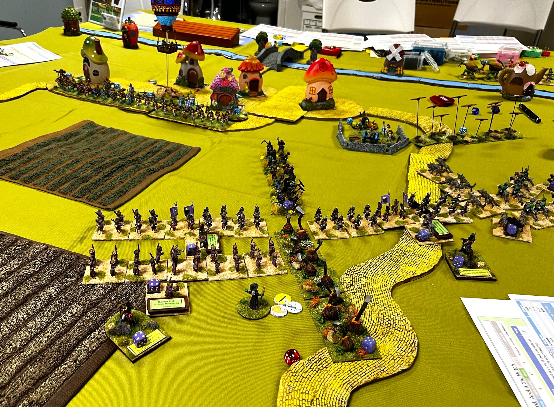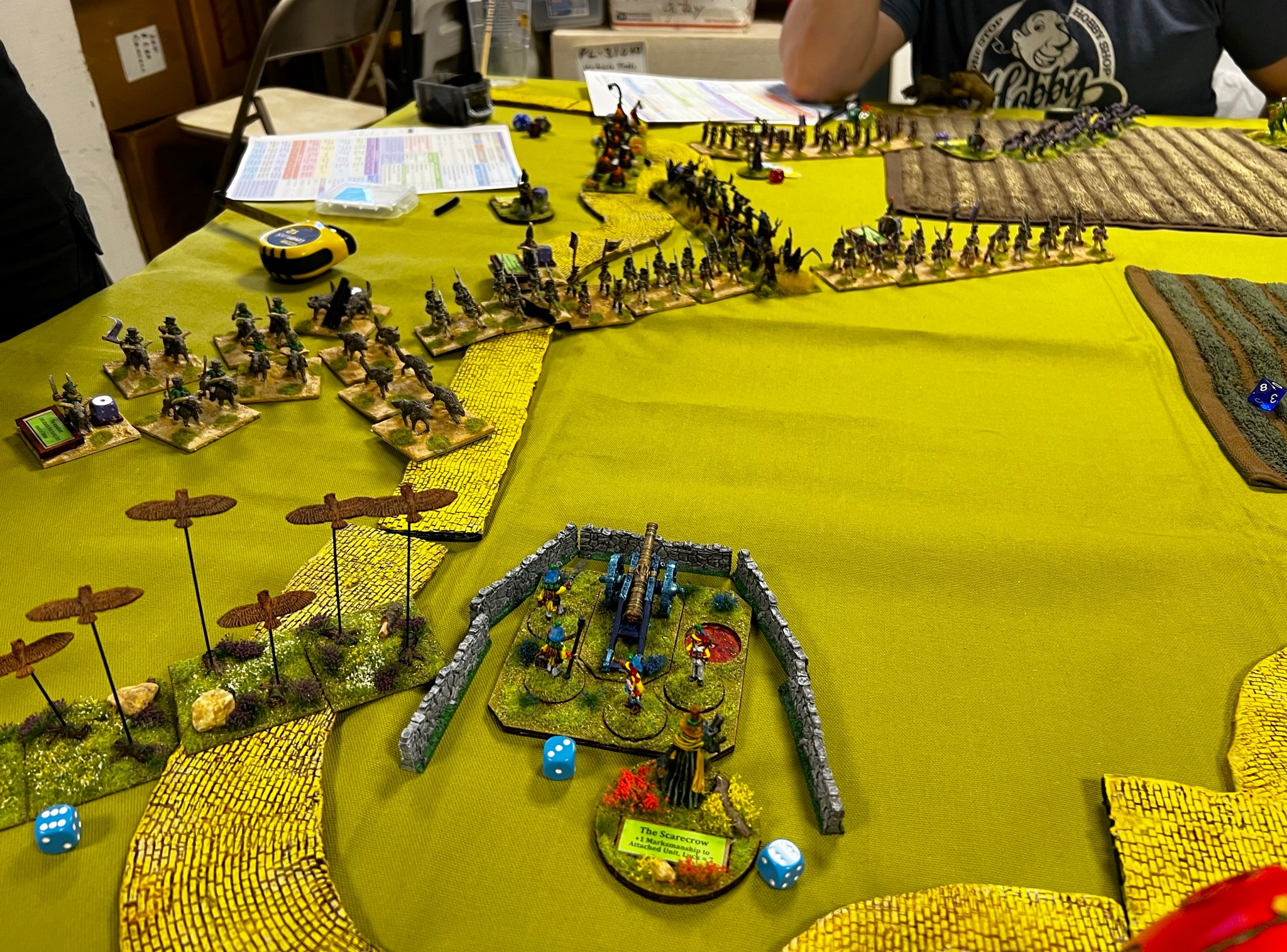 Both Munchkin flanks had now been compromised – and as the Gillikin Goat Riders were in the process of routing the Great Owls, things were not looking up for the Munchkins. At 2 PM we rotated in new players to take over.