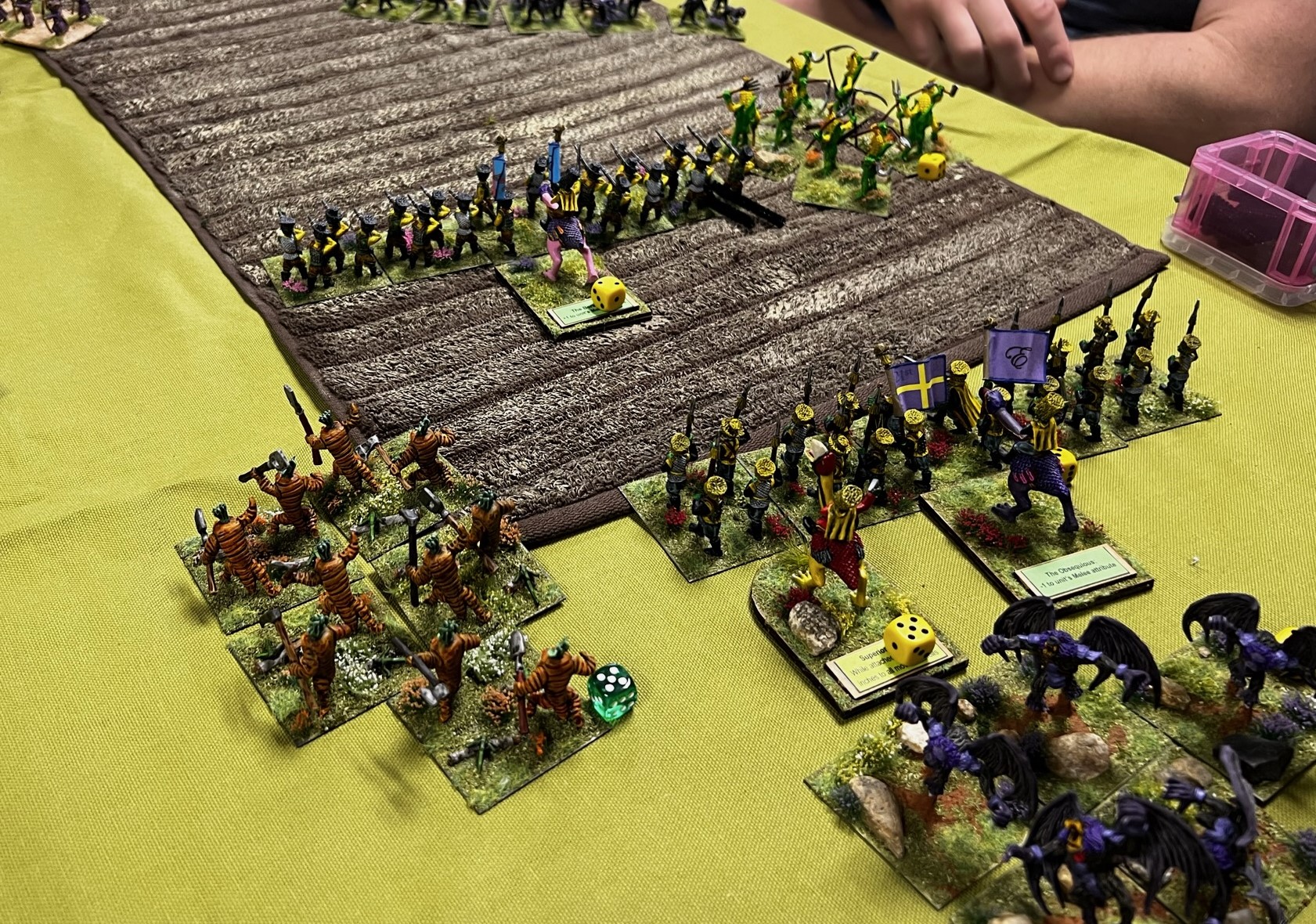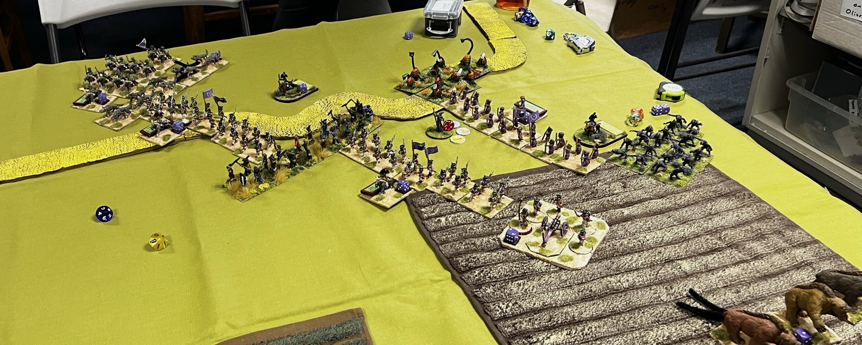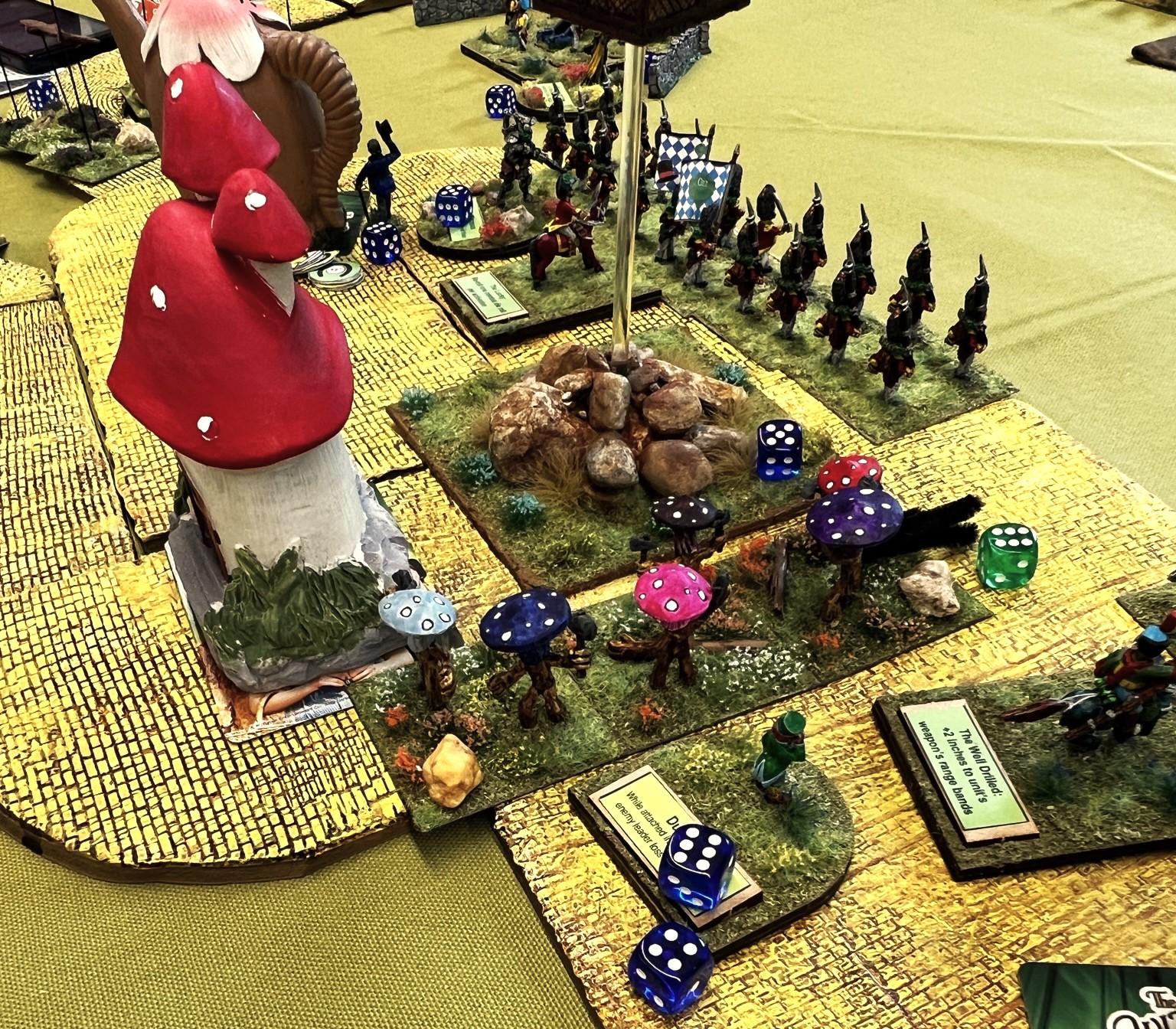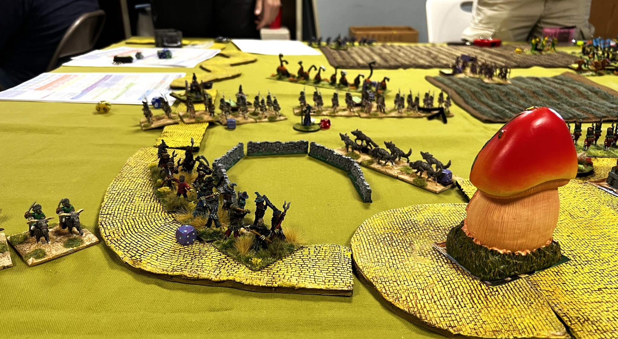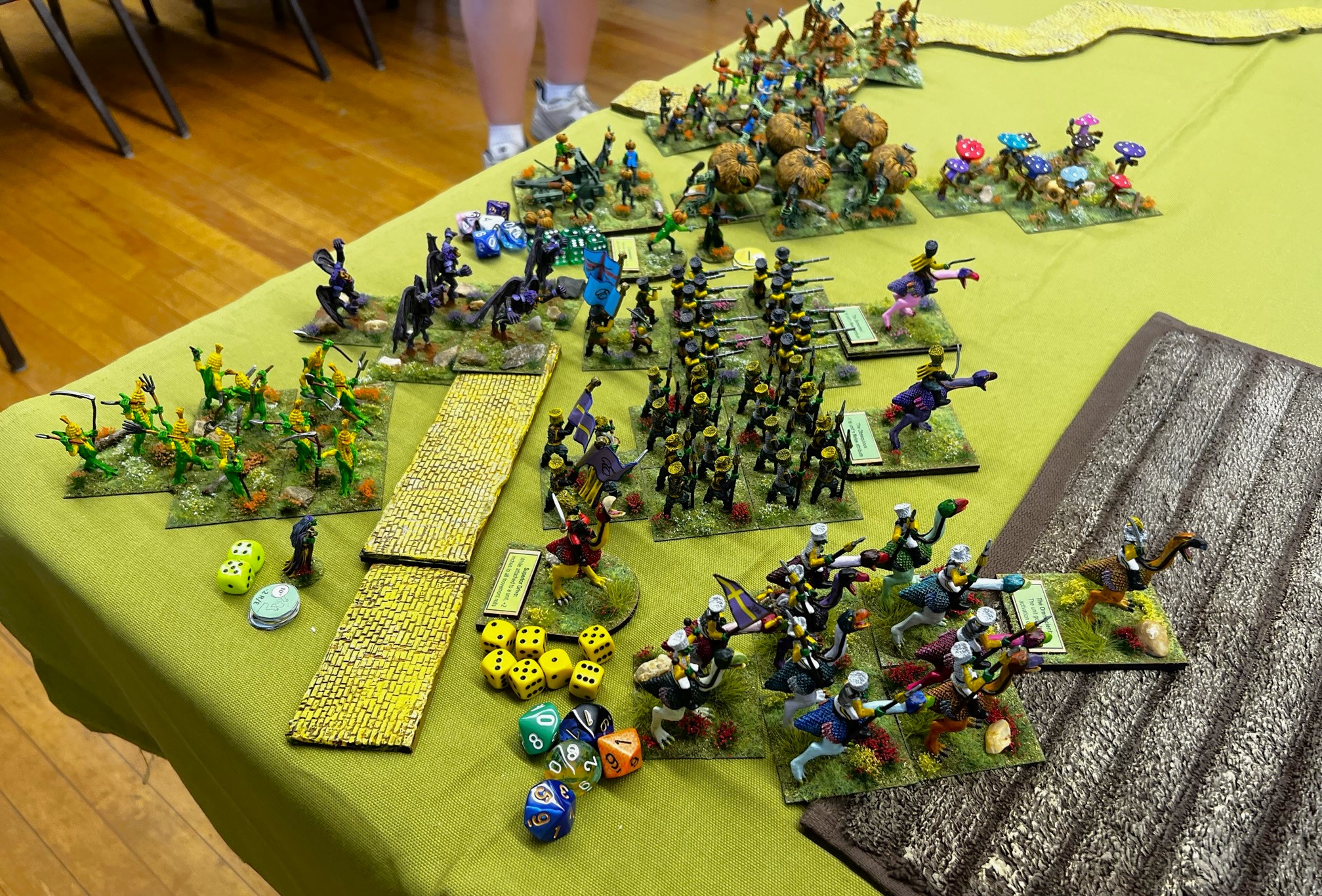Both Munchkin flanks had now been compromised – and as the Gillikin Goat Riders were in the process of routing the Great Owls, things were not looking up for the Munchkins. At 2 PM we rotated in new players to take over.