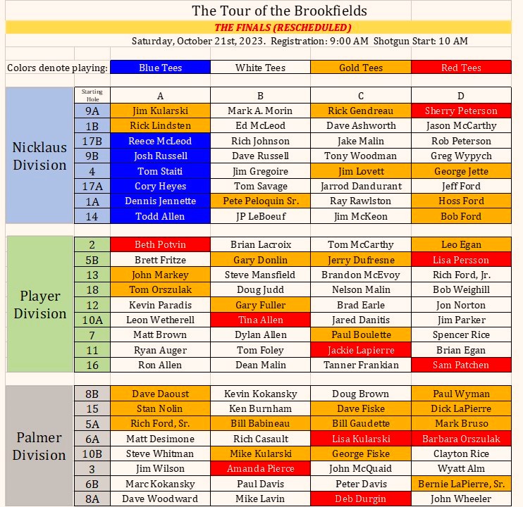 As a reminder, and I am sure this will not be a problem, but being a no-show carries with it serious suspensions from the Tour of the Brookfields. Simply put, being a no show puts 3 other players out – and that is not fair. Hence, we take it seriously.