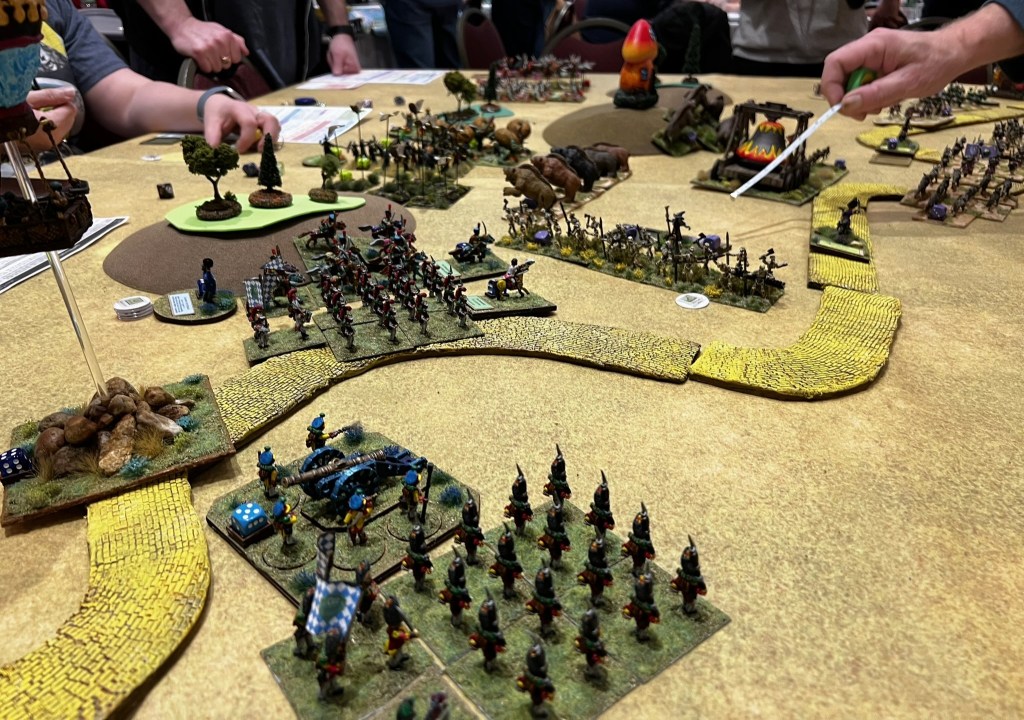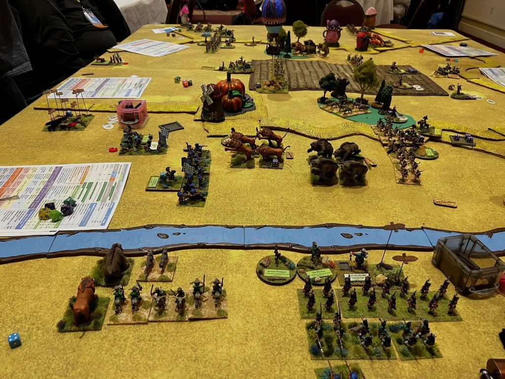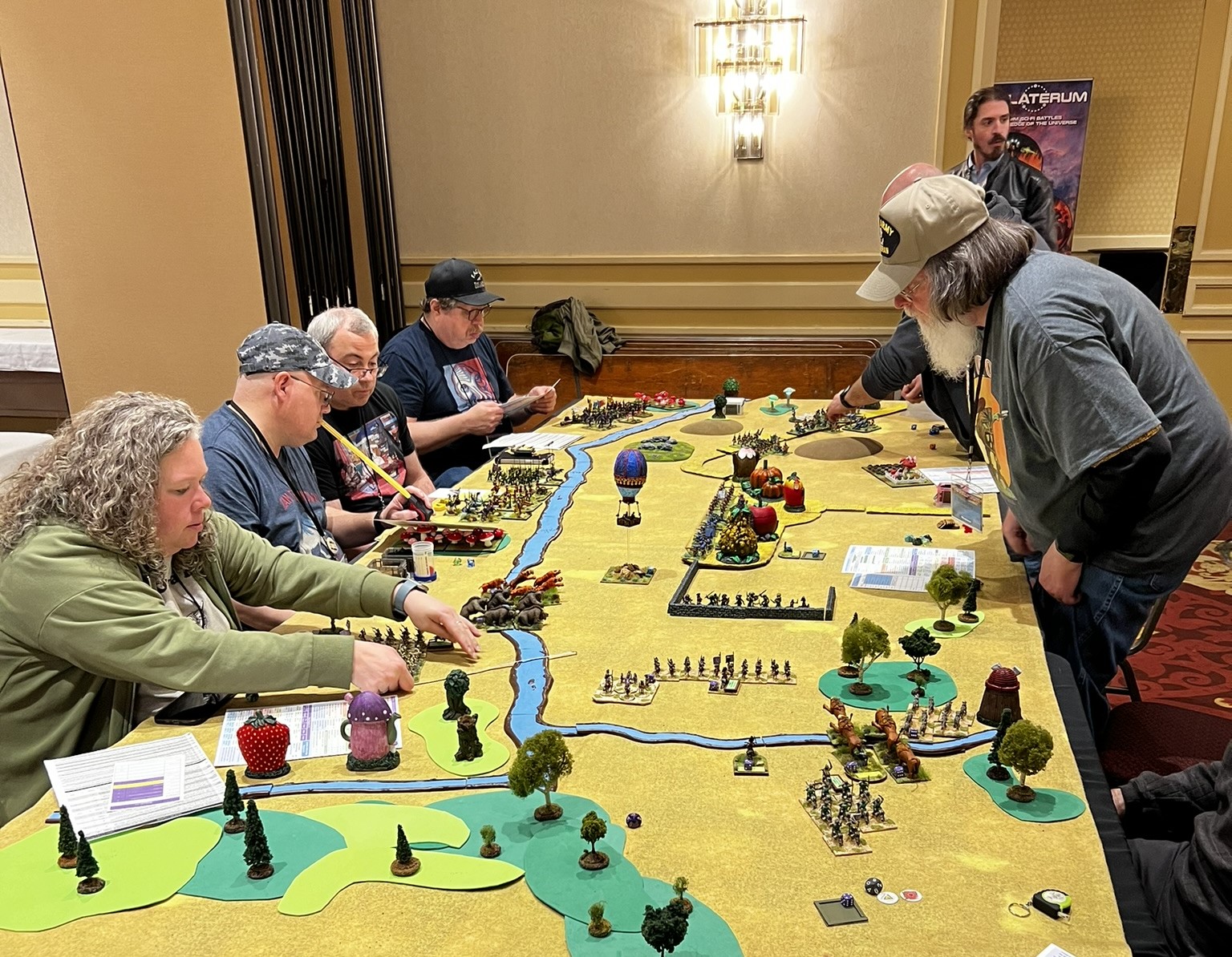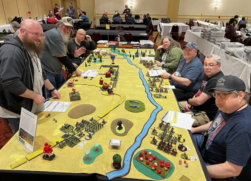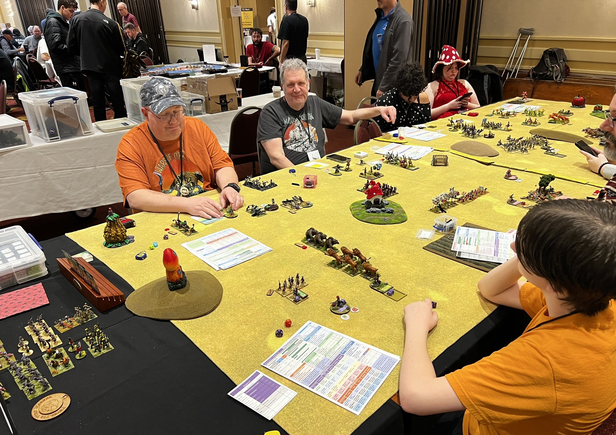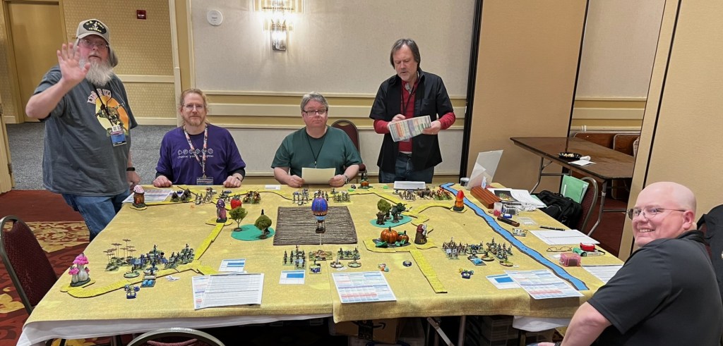 It was wonderful – the games were sold out quickly and the players were excited to play the game. I even had more players than I had slots (I let extras in when I could). I have some photos and a brief synopsis – but if you think I can remember all the details of 10 four-hour games over 4 days, well, you have greater faith in me than I have!