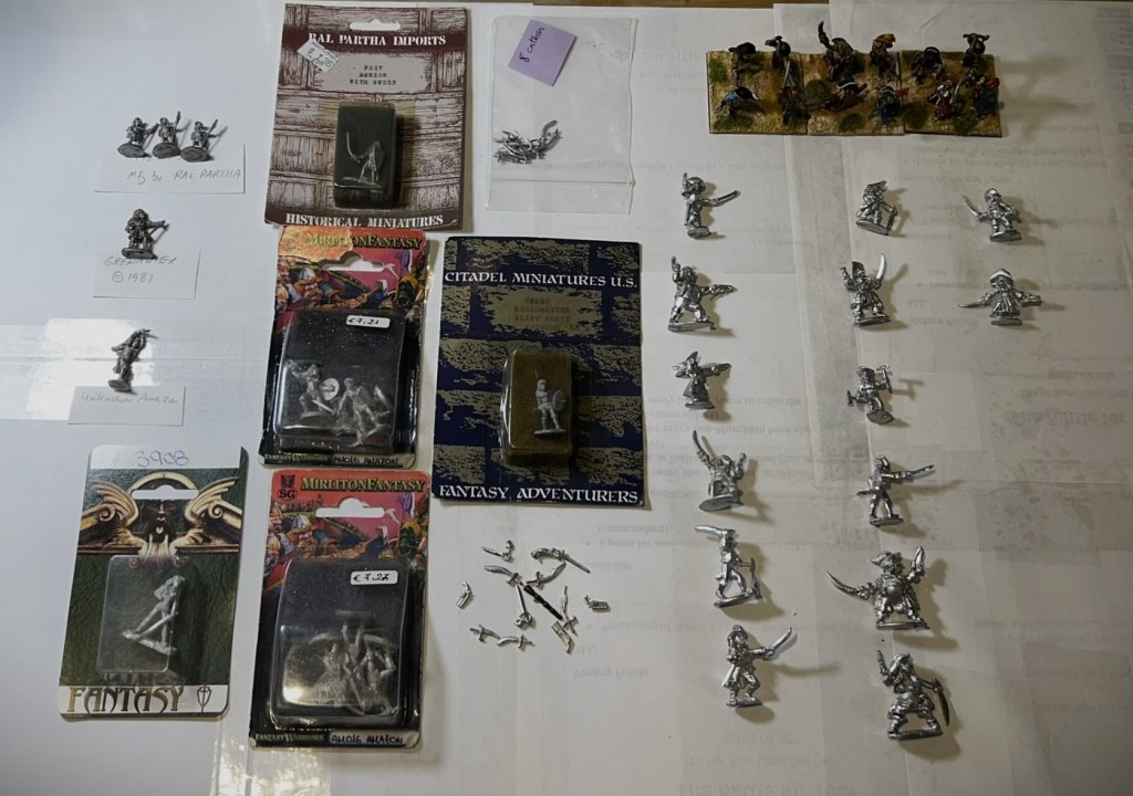 The other regiment would be based on grassy terrain, with a mix of original Ozz and the Old School warriors from the 1980’s. As I like to track where the Old School stuff actually came from, I will be sharing that research as well. Below you see my starting point – with all of the figures plus some of the conversion weapons. Some of the weapons were left over from other projects, and some were some I cast myself years ago. These would help me convert the draftees into more appropriate-looking Ozz types. While I hardly ever deviate from the “official” figures, I thought that this would be fine and a chance to paint up some older stuff and that was most intriguing.