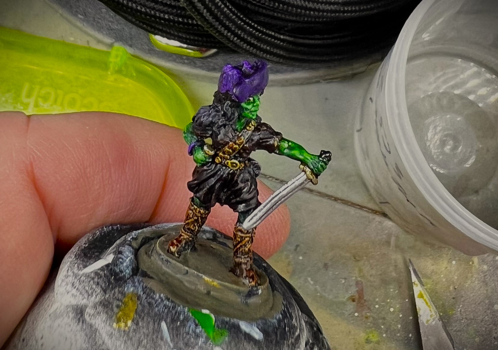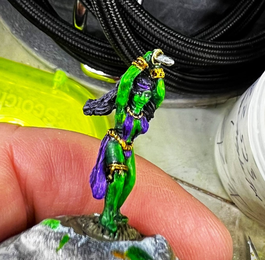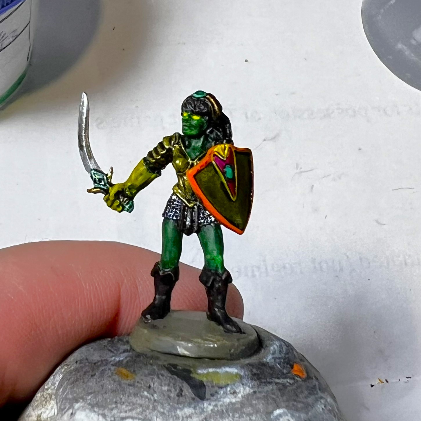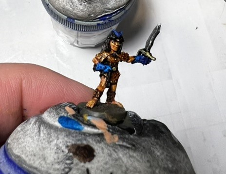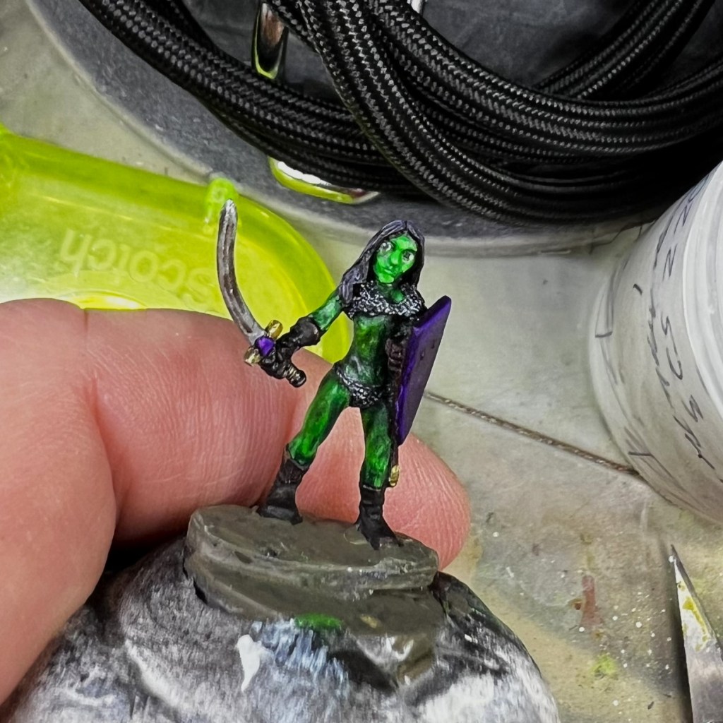 The last of the 20 draftees is a female figure with a dagger. That’s all I know as the figure’s base was devoid of any markings and I could not discover her origin. As it was the last female figure I found (that was not topless – I couldn’t bring myself to put topless Amazons into Ozz – and I have a bunch of those). As she is, she seemed ok, so she was in. I painted her as a Gillikin but added nothing else.