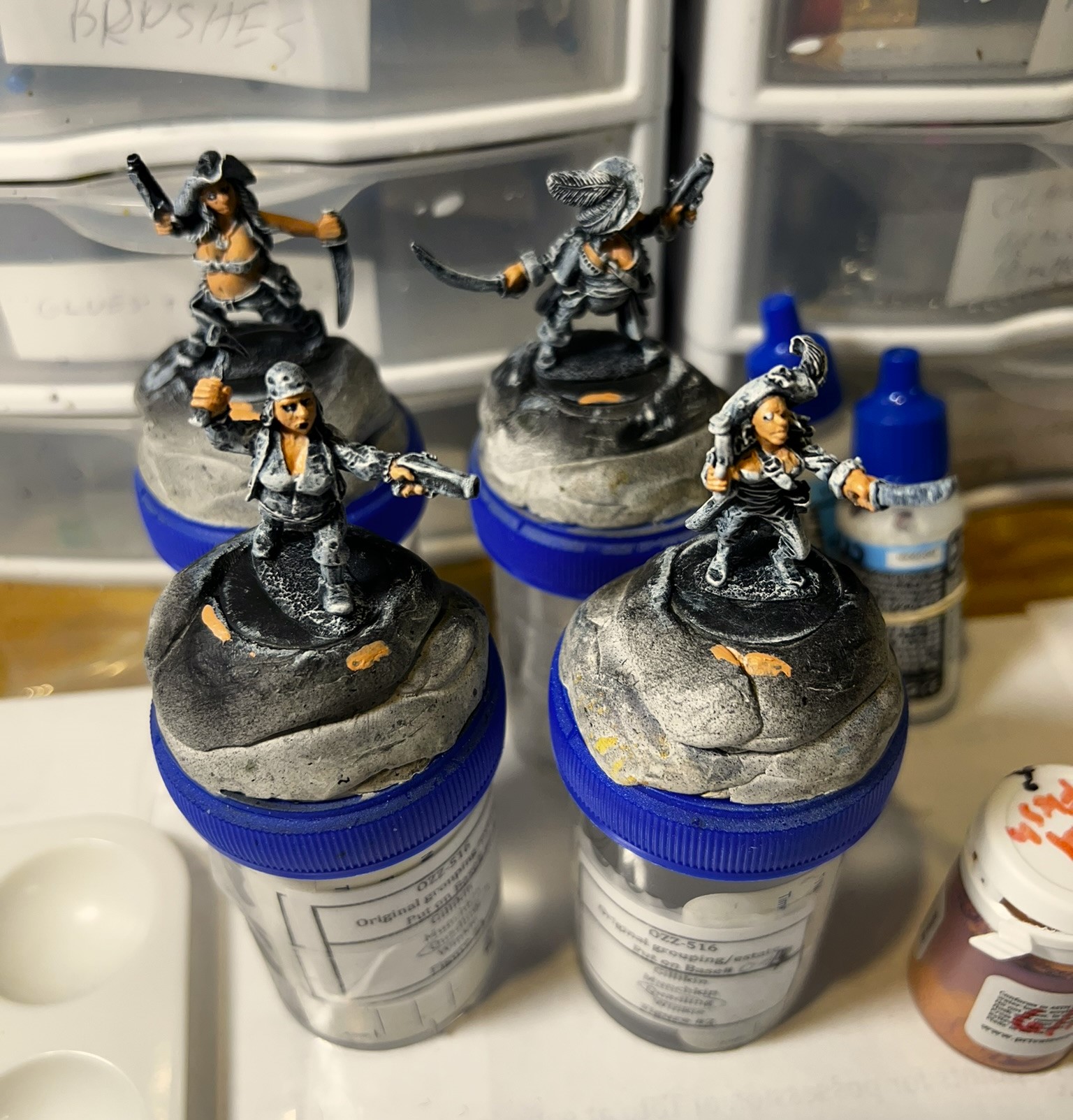 PAINTS, INKS, GLAZES, SHADES, WASHES, PIGMENTS, FLOCKING, GLUES AND MORE THAT I USED ON THE TWO ADMIRAL JINJUR FEMALE PIRATE REGIMENTS: