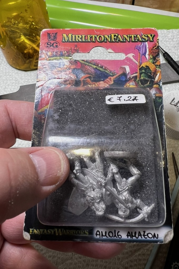 Now onto the conversion figures. Six of these were Grenadier #3102, and were repackaged by Mirliton as female warriors. They were originally sculpted around 1992 by Sandra Garrity, and were called “Women of War”. Grenadier was later bought by Mirliton, and many of their miniatures were repackaged post-acquisition. These are not found on the Mirliton website so OOP.