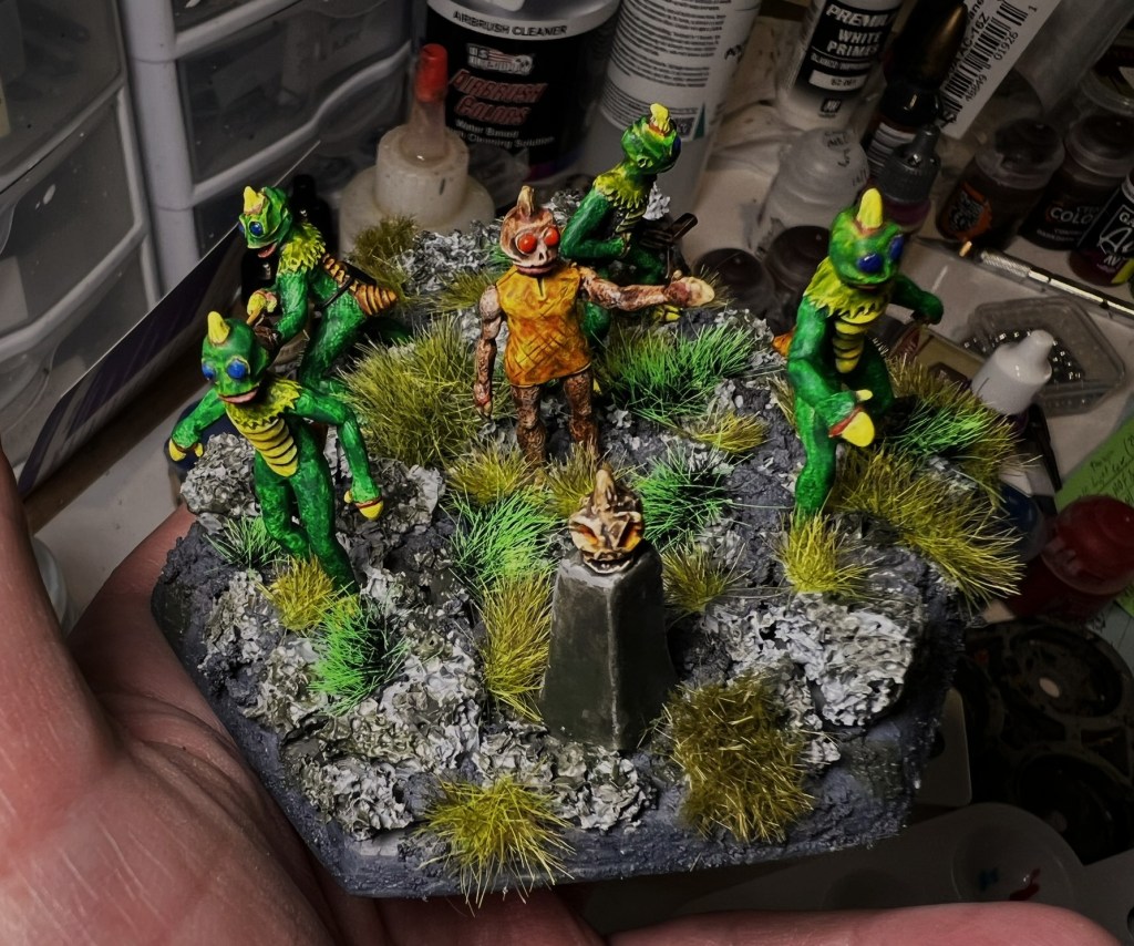 On the last time that I posted, I shared my Scarecrow Girl statue that I cobbled together. After Christmas, I was able to add even more to my scatter terrain with a myriad of pieces. In the case of this post, I’ll share how I built out and painted up desert/cactus pieces and some oases. I also did a bit of tree build and rehab work that I will share here.