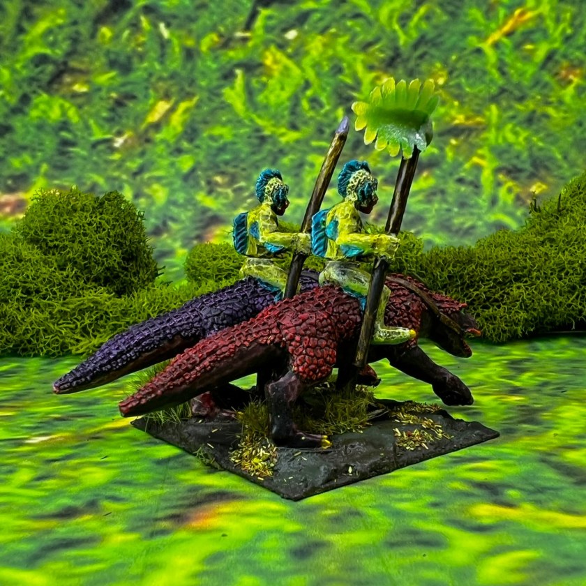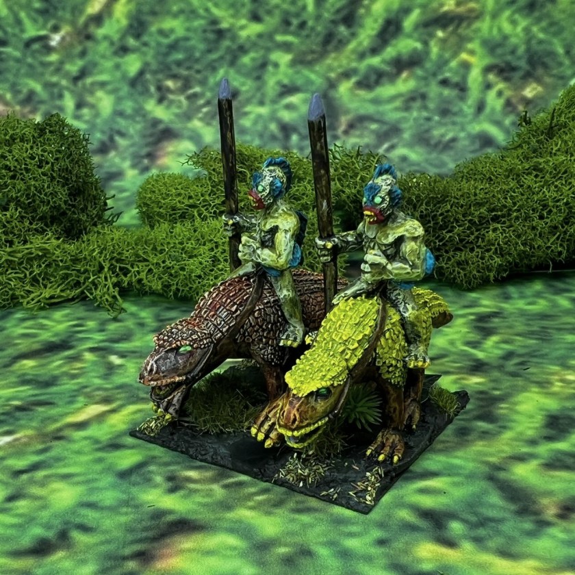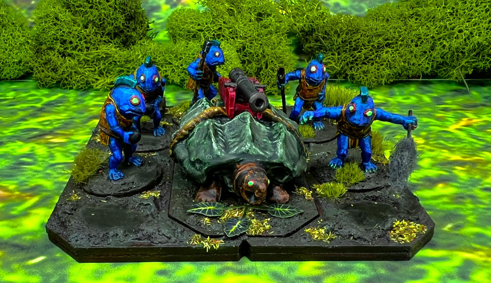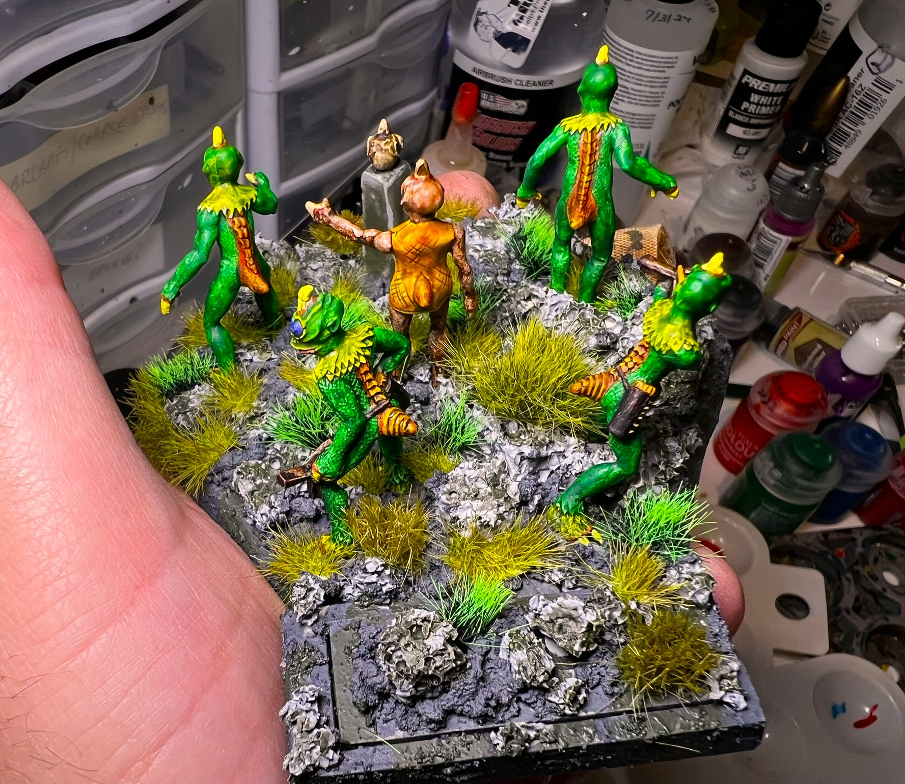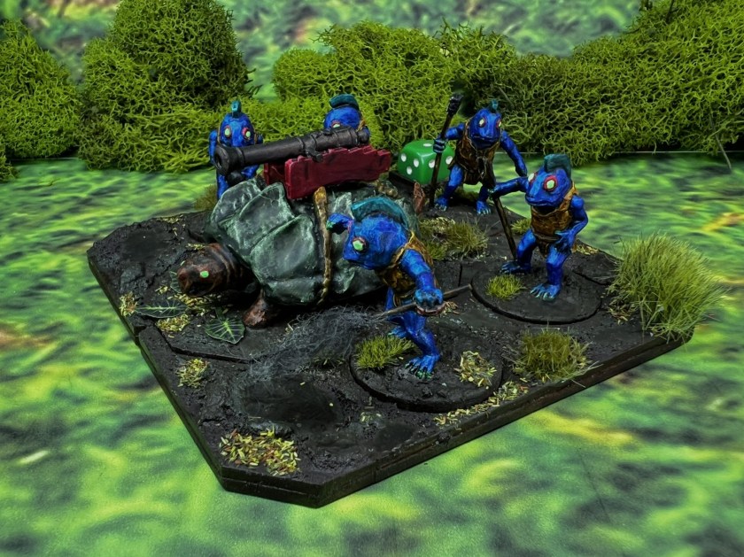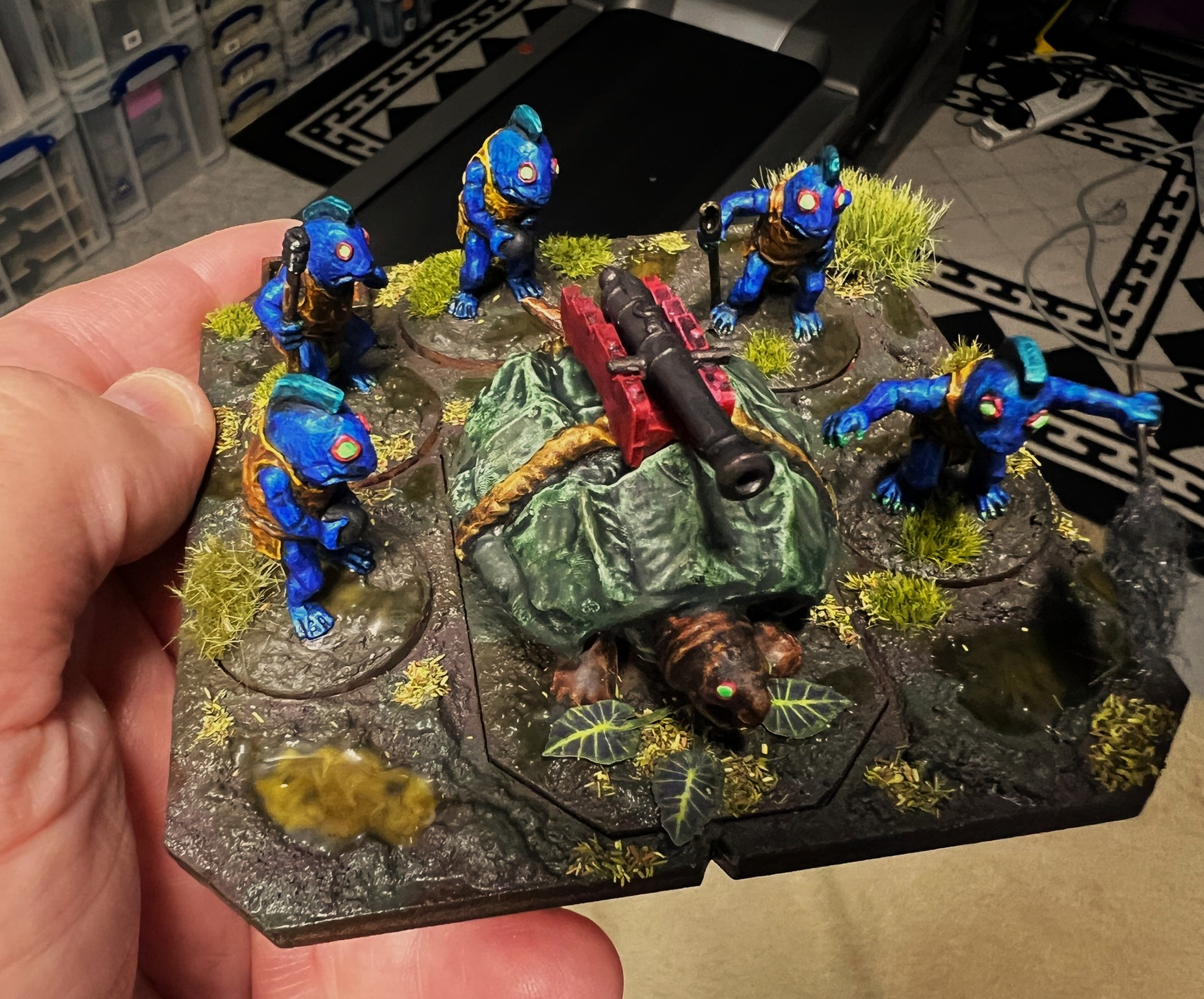 I glued the plants to the base, then added the AK basing paste, let that dry, then added pigments. When that was set, I added flocking to match my Whim Whim and Temujican unit basing schemes.