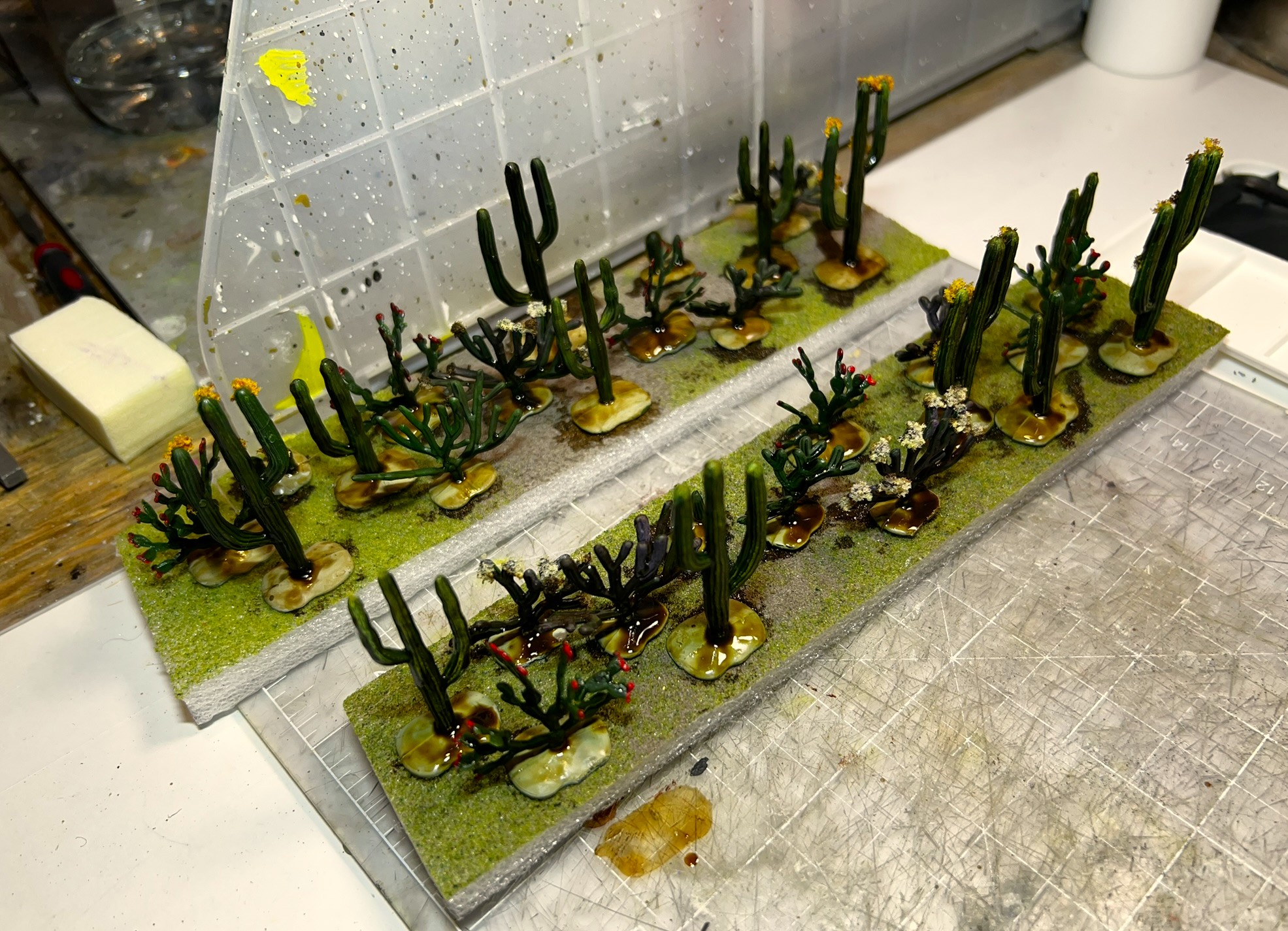 It’s all for my Wars of Ozz games. I needed some more desert pieces – especially now as I have significant numbers of desert units from both the Whim Whim and Temujican factions. I did previously use some cacti from Hobby Lobby in my Mesoamerican games.