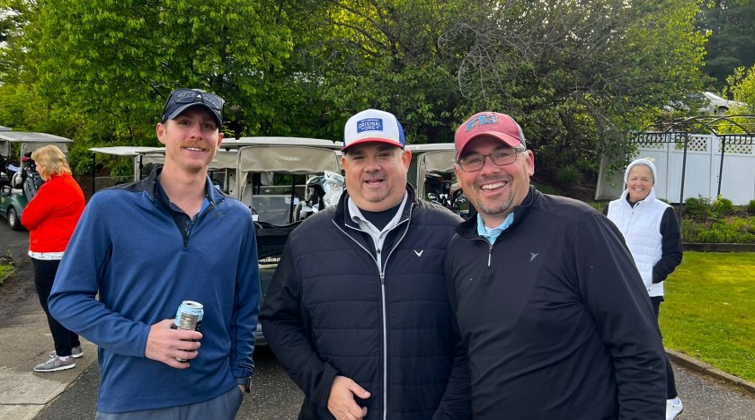 In the Nicklaus Flight, we had a playoff between two teams that finished at -9. These team were: the team of Cameron Fahey, Connor Fahey, Ben Doros, and Darryl Miner; and the team of Dan Mitchell, Jim Gregoire, Jason McCarthy, and Paul Wyman. Both battled it out in a playoff on the 18th hole in the rain, with Cameron Fahey’s team acing first place with a birdie. Congrats to both for a hard-fought round! This group was very tight with only 4 strokes separating the bottom team from the top.