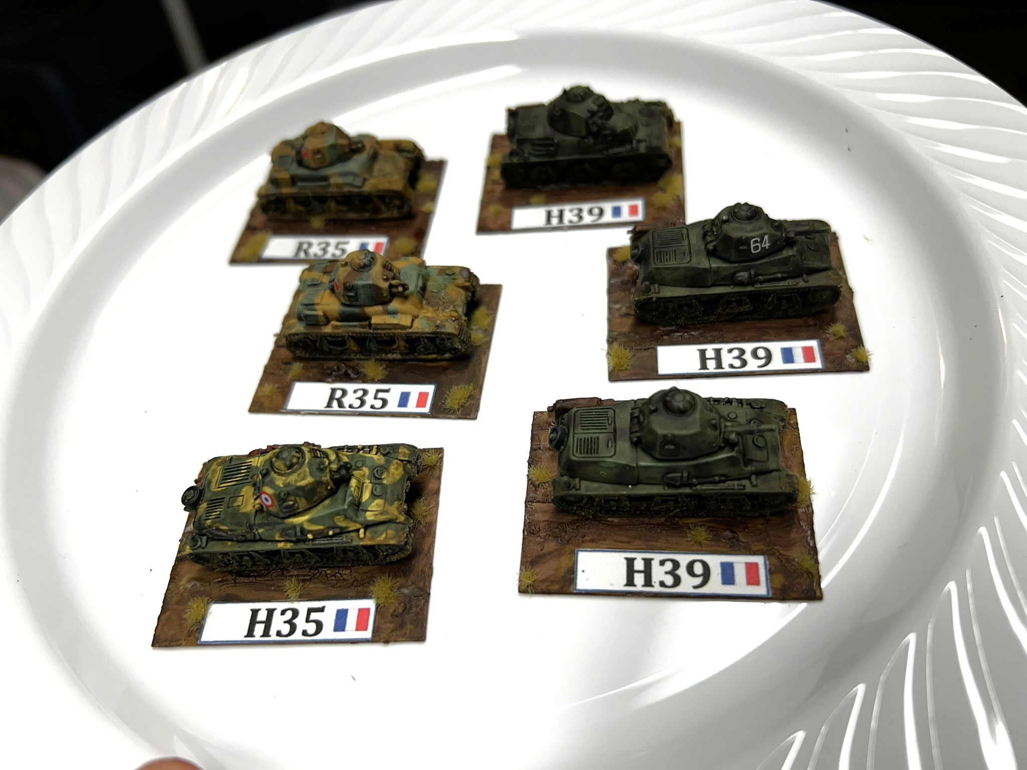 Lastly, in my last report, I did say I had some little tanks to paint up. Here are a few I rebased (for my non-golf audience) for my upcoming project. These are French tanks that fought in early WWII. I The bases are 1′ wide by 1.5″ long for perspective. They are 15 mm (1:100 scale). Now I have even more tanks to paint up…