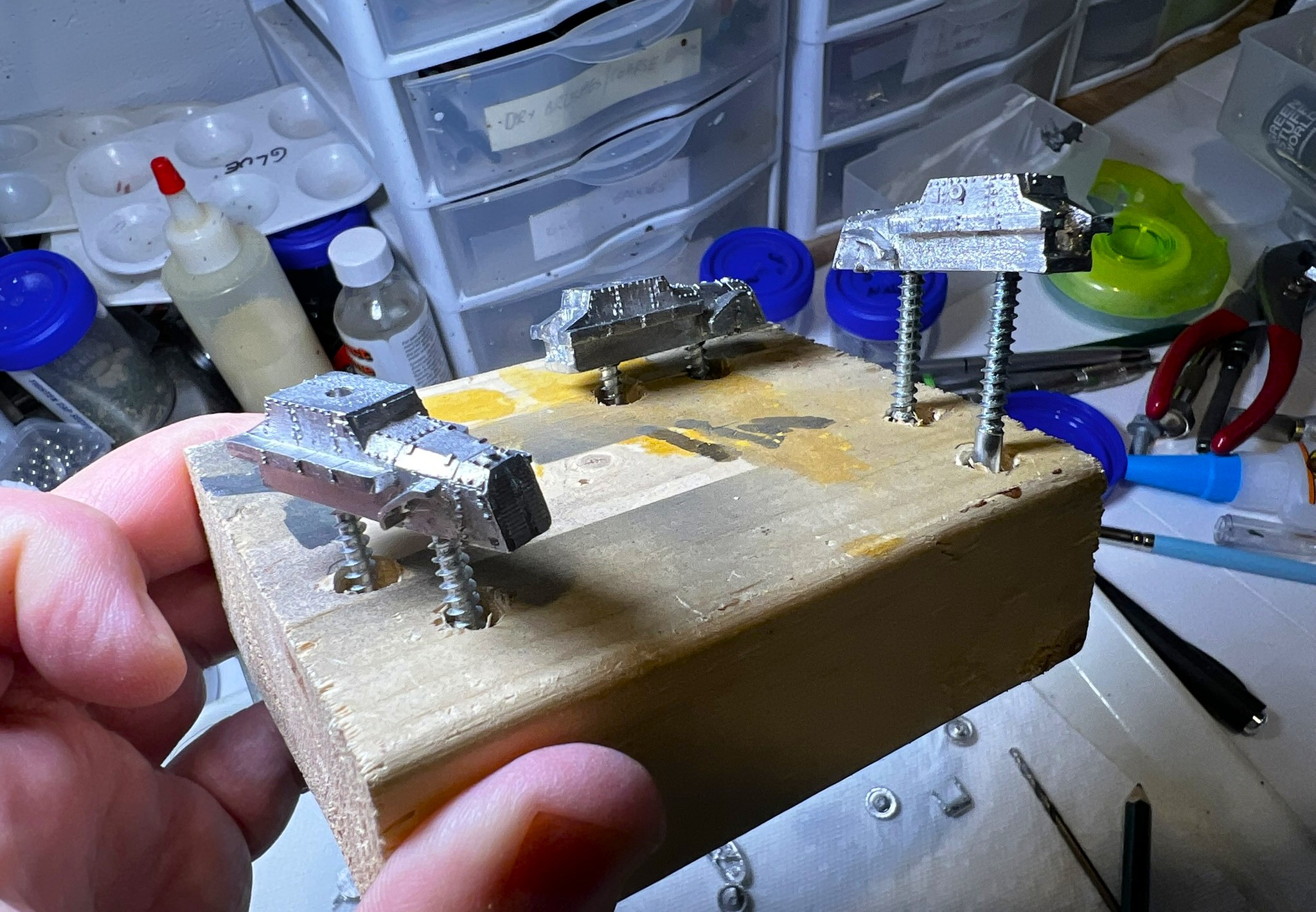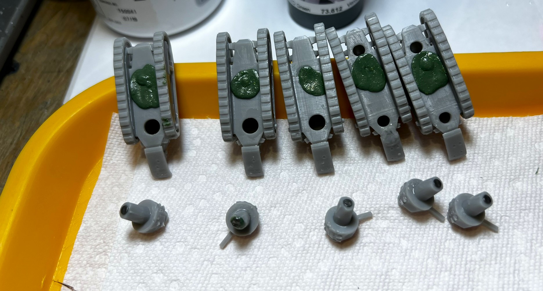 I used neodymium magnets and flat-head nail again to mount the turrets. The two H35 turret prints were slightly different, but I adapted with green stuff.