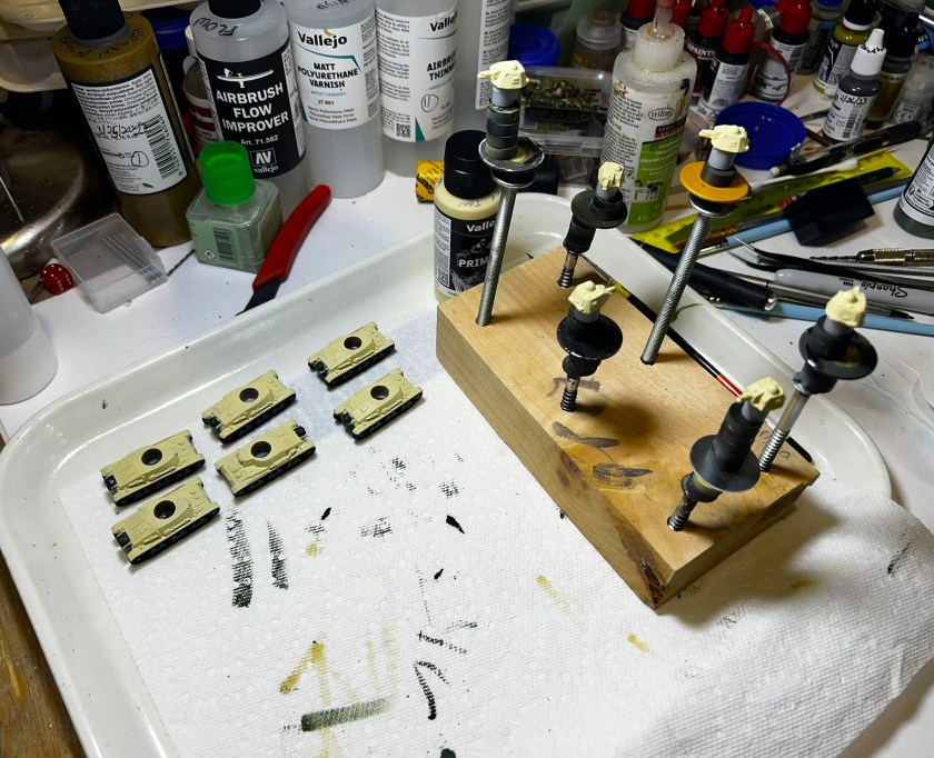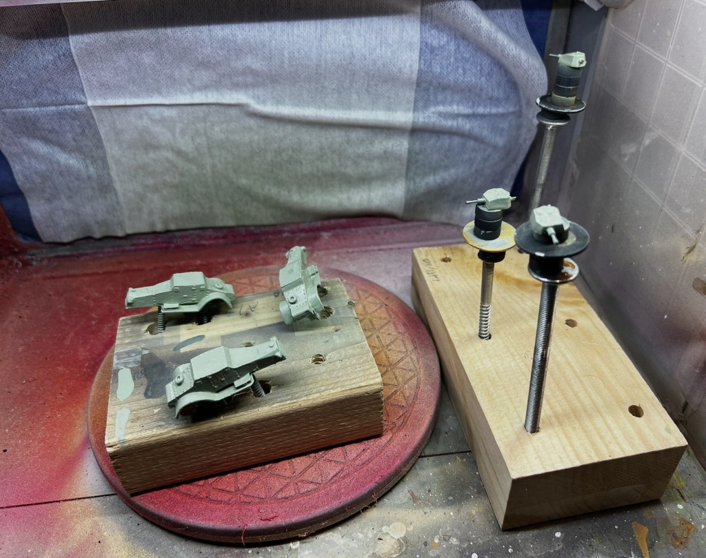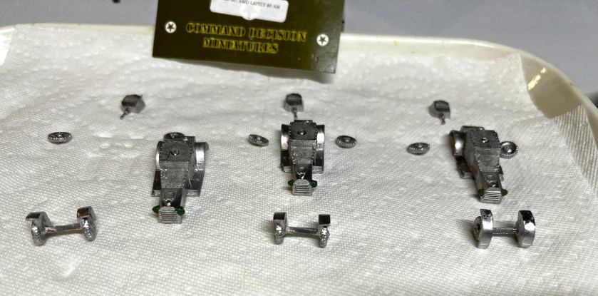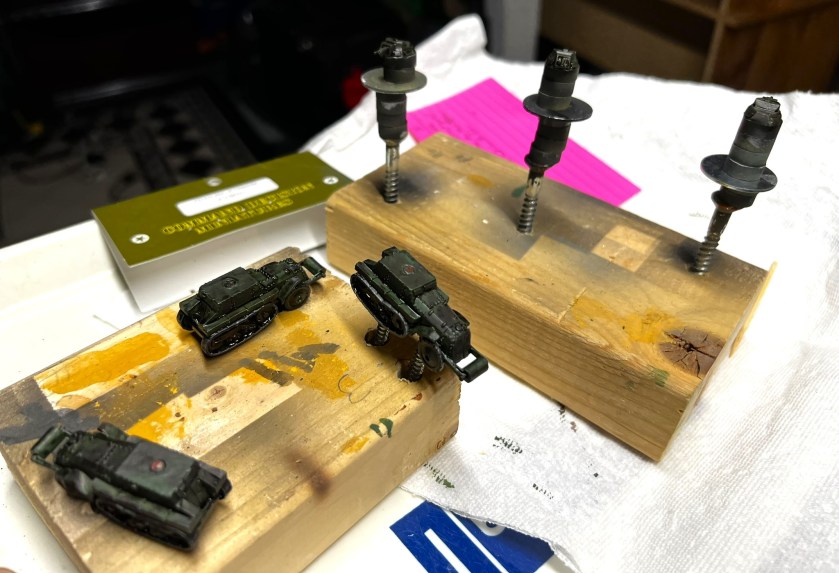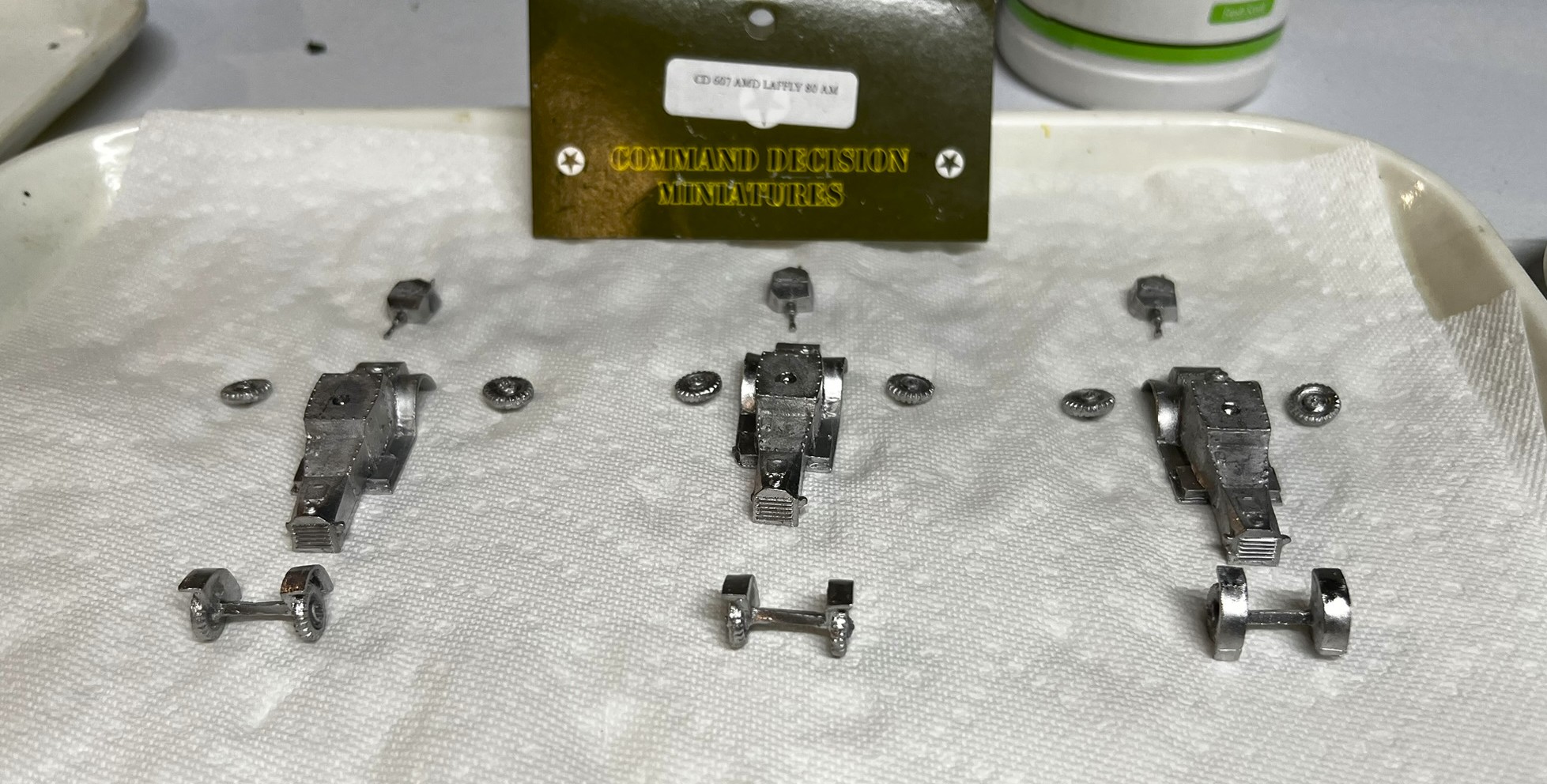 This left me with 6 H35’s to paint to round out the tanks for Vichy (more armored cars would be coming!). As I was also working on many other vehicles at the time, plus running for reelection (I won), plus preparing for and attending HUZZAH, AND prepping for HISTORICON…plus golf…I was BUSY in April, May and even June and July. I am sure that you get the picture, and ironically I have few WIP pictures! But I’ll share what I have.