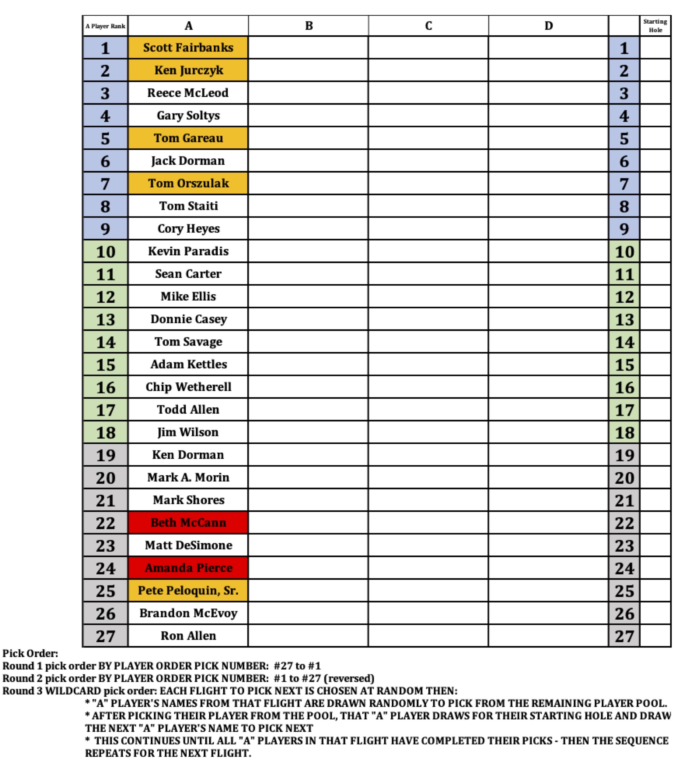 In the middle flight, there was a tie between two teams at -12. Team members were: Todd Allen, Paul Boulette, George Fiske, Doug Brown. The members of the opposing tied team were Adam Kettles, Ron McCann, Jarred Dandurrant, Ed Sanborn. A playoff of one hole would ensue with Adam Kettles dropping a 15-footer to win first place. Congrats to both teams!