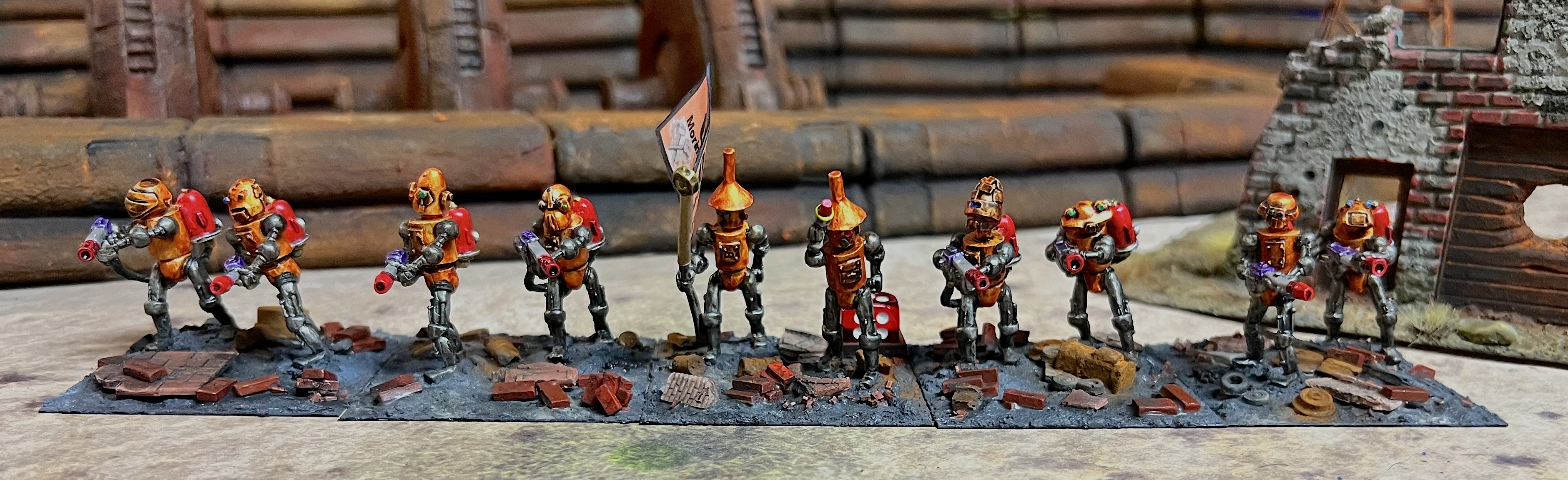 Convention season has arrived! So, I needed to finish off a few regiments in anticipation of several games between now and June. This time, I needed to augment my forces of Professor Nitpik and his Mechanical Men. Click the link to learn his back story.
