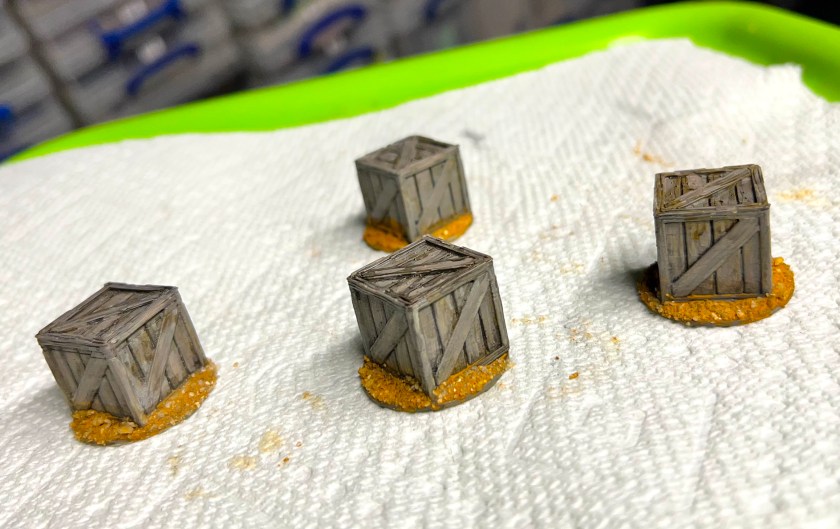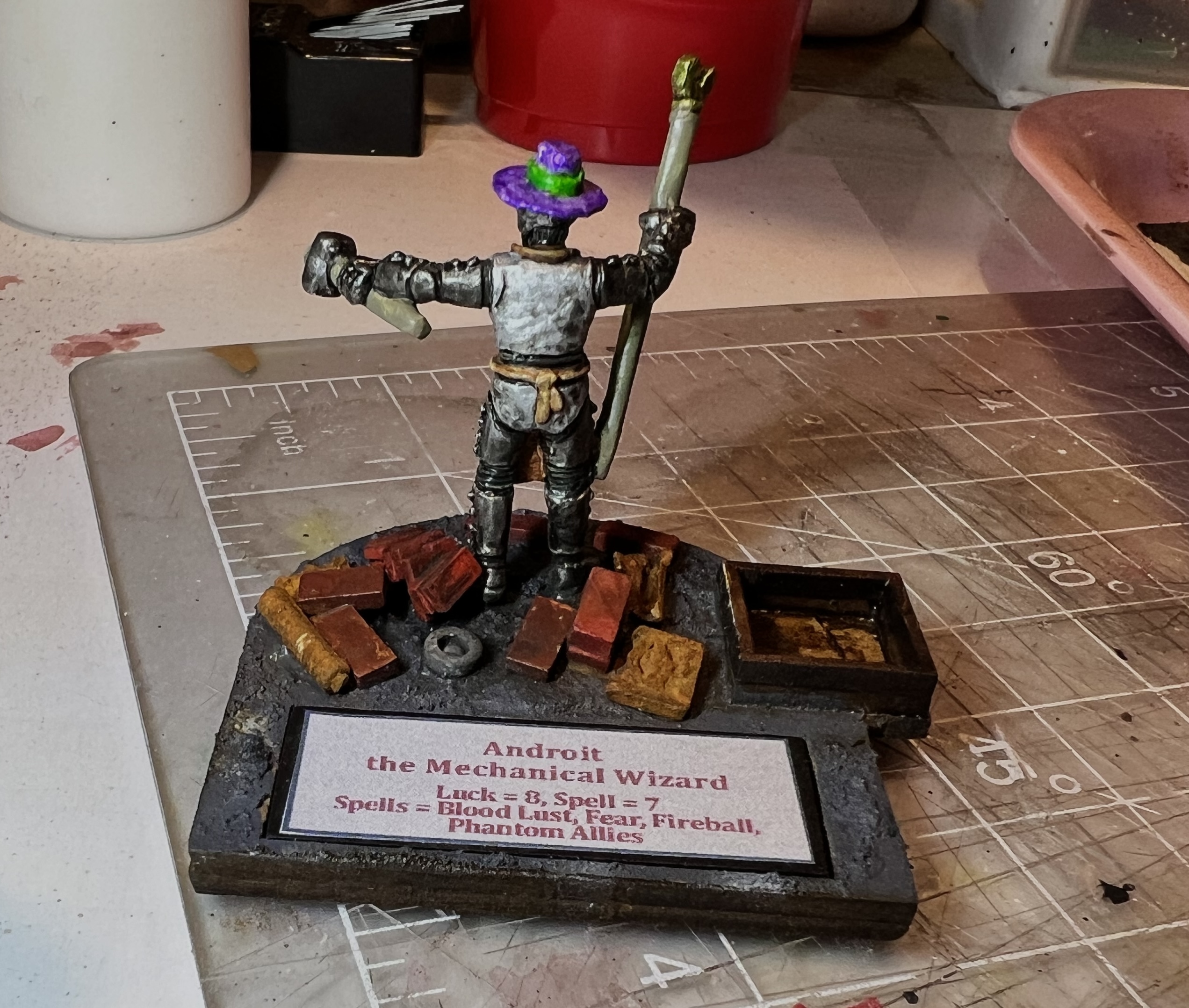I also painted up Androit, plus 4 crates as game markers for the games to come. These represent stores of Professor Nitpik’s technological secrets.