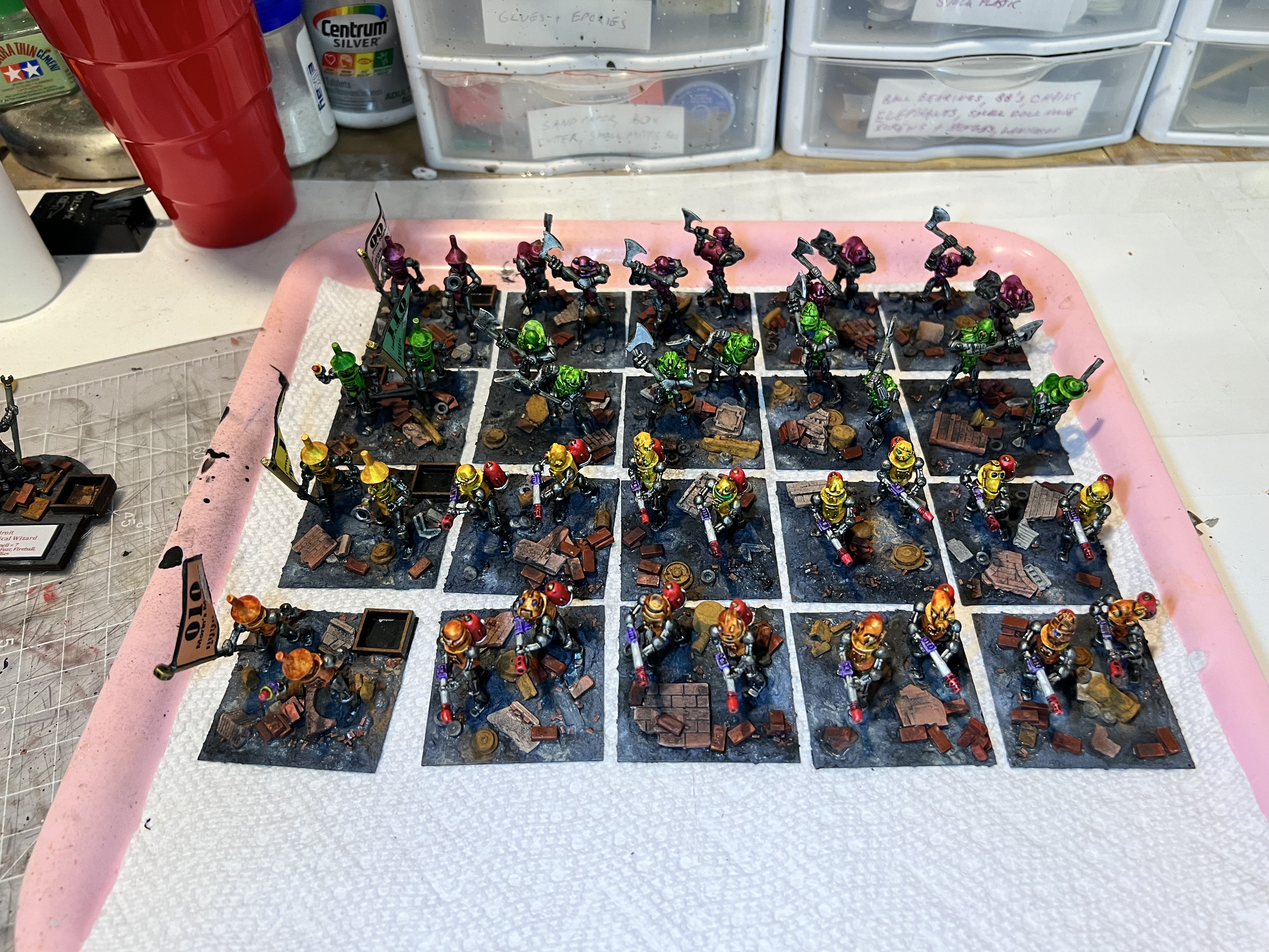 PAINTS, INKS, GLAZES, SHADES, WASHES, PIGMENTS, FLOCKING, GLUES AND MORE THAT I USED ON THE TWO REGIMENTS OF NITPIK AXEMEN: