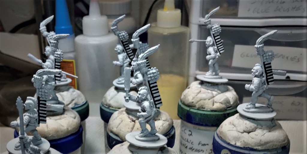 Total figures completed to date for this project: 177 figures: 109 Aztecs, 32 Tlaxcalans, 36 Spanish Conquistadores (53 more to go in Mark’s Conquistador Contest!)