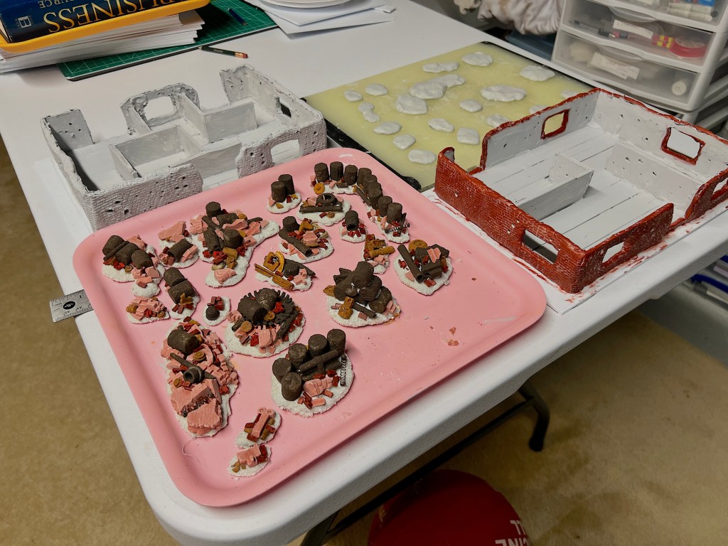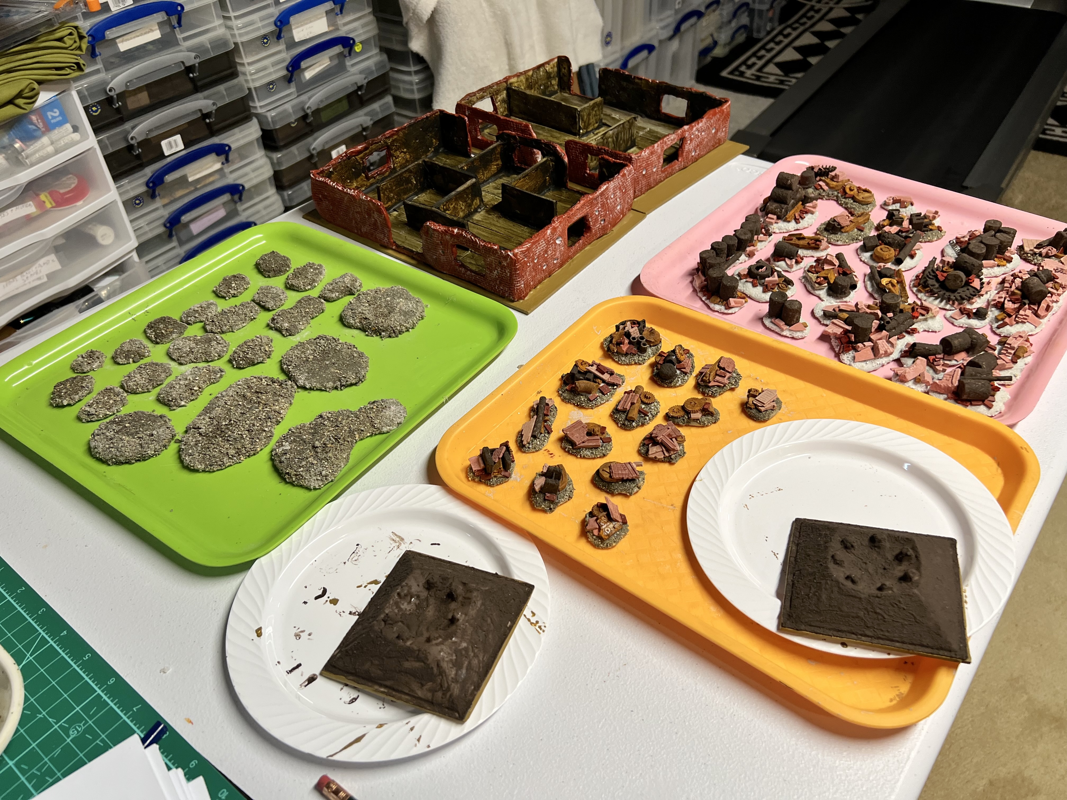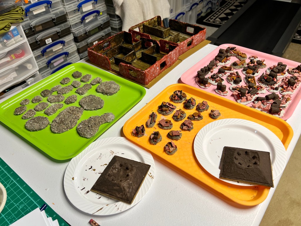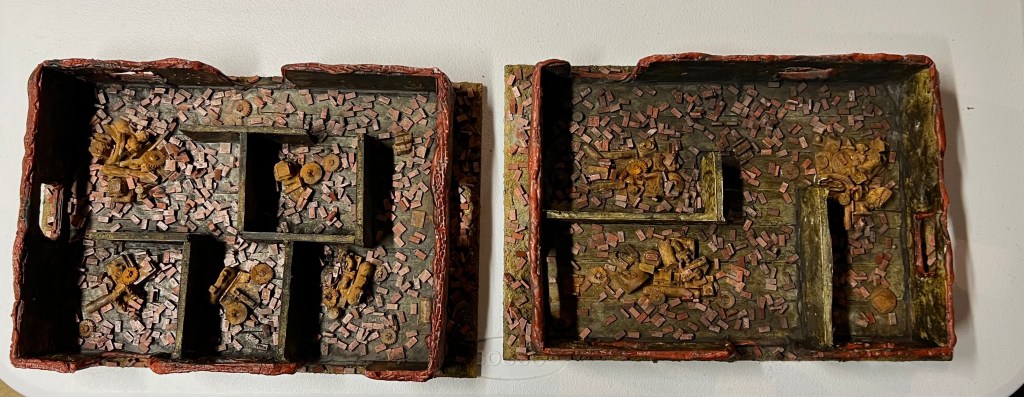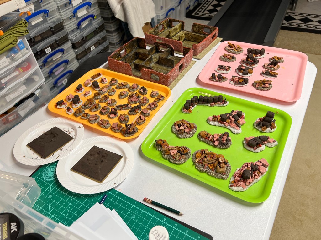 Followers of this blog have seen several posts showing my “rusty” preparations. I have been getting ready for my numerous games at 2026 tabletop wargaming conventions. That preparation involves painting up figures and terrain for scenarios that involve a good amount of ruins and wreckage.